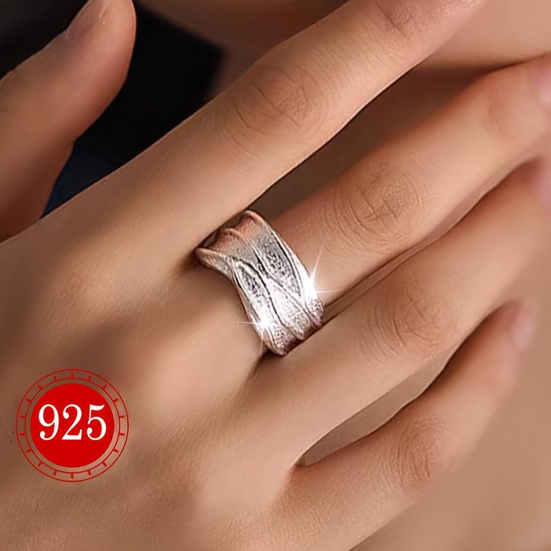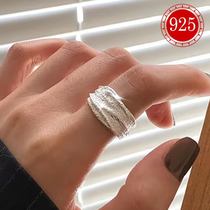 This S925 silver ring is perfect for summer beach outings with its unique wrinkled wave design. Low allergy and suitable for women.