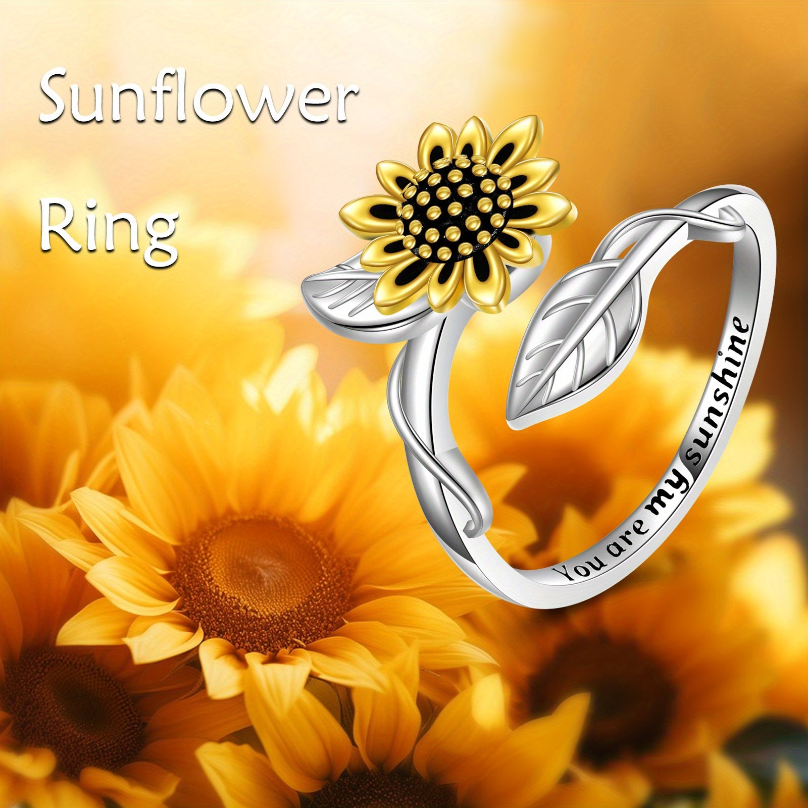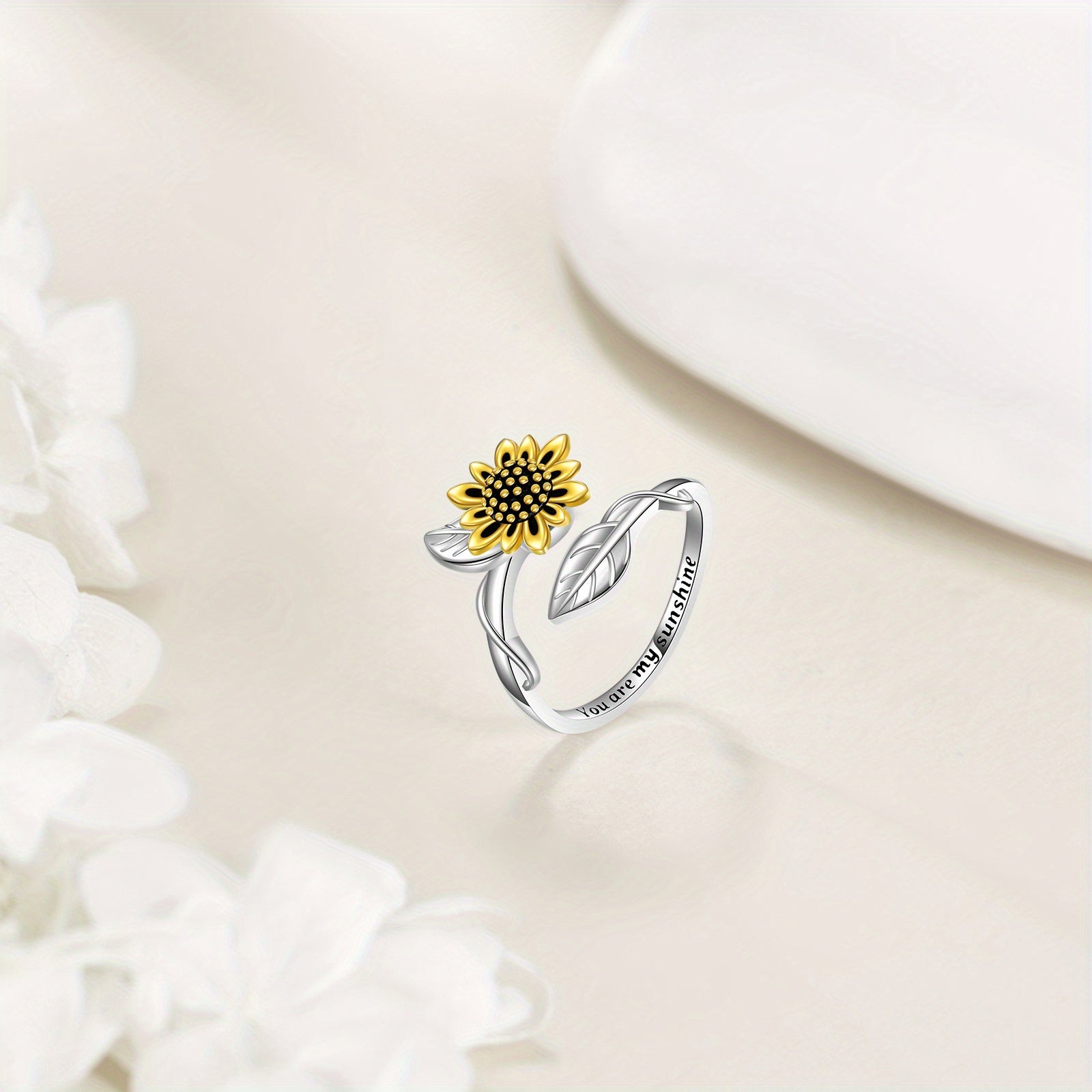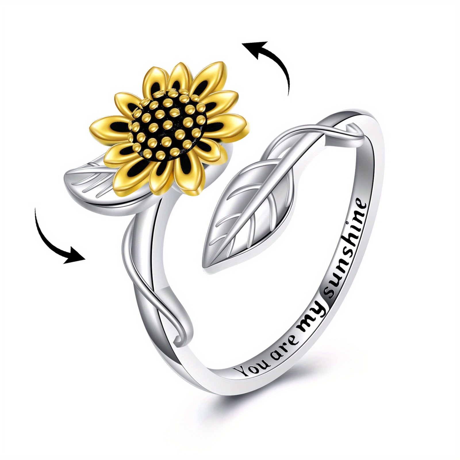 Beautiful sunflower fidget ring made of high-quality 925 sterling silver, perfect as a Valentine's gift for women and a stylish accessory for everyday wear.