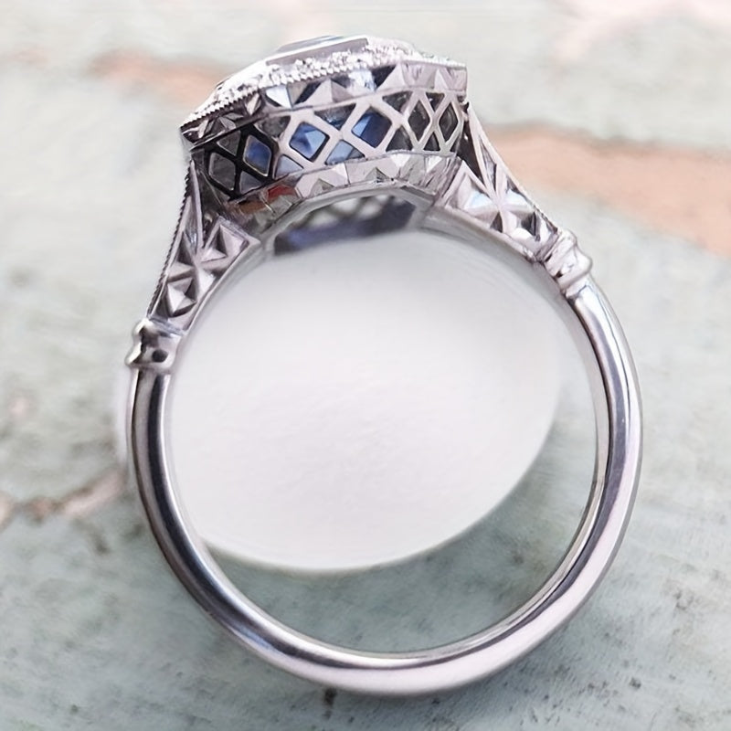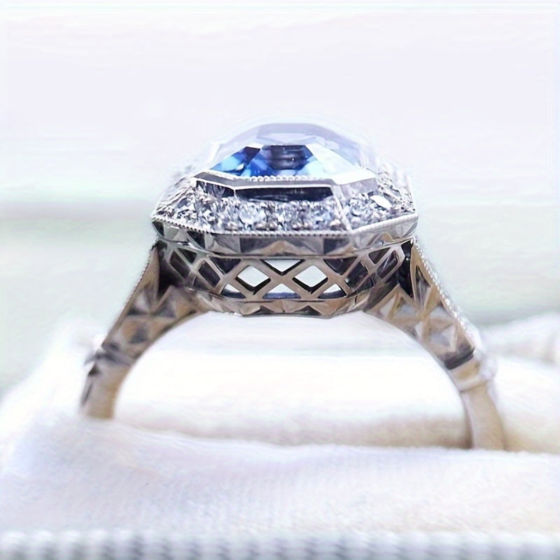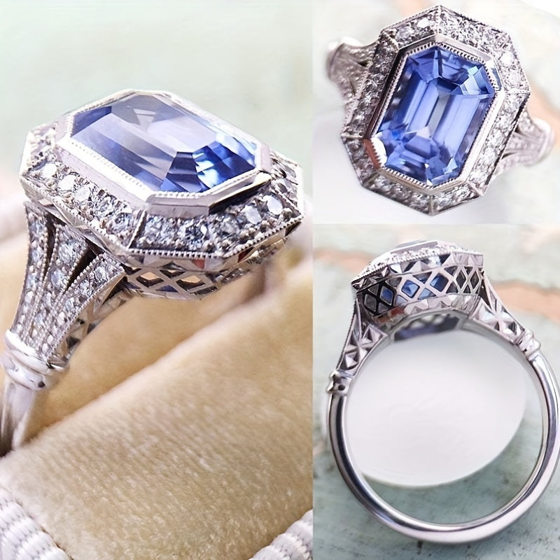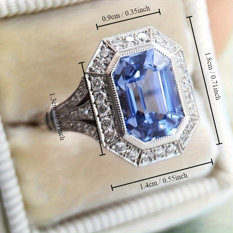 This stunning ring features a synthetic gemstone in a copper setting with sparkling CZ accents, making it perfect for your wedding or special occasion.