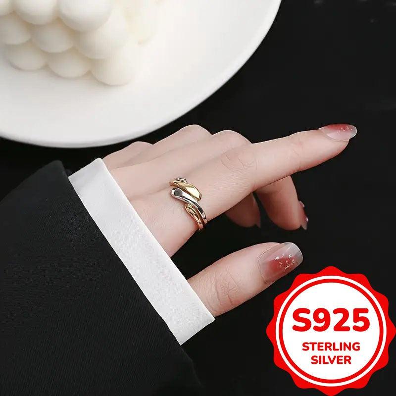 Elevate your style with this set of two open rings crafted from 925 sterling silver. The twisted two-tone design adds a touch of elegance to your daily look. Perfect for casual wear.