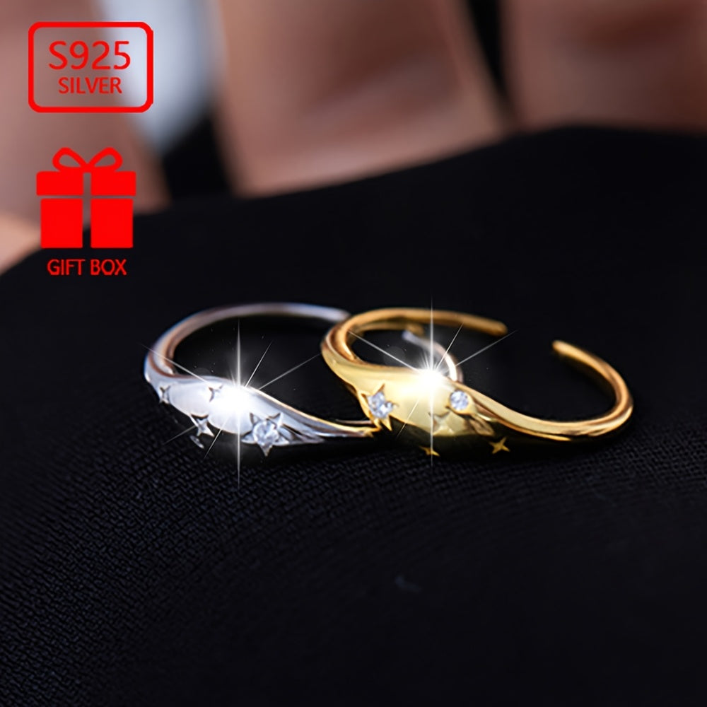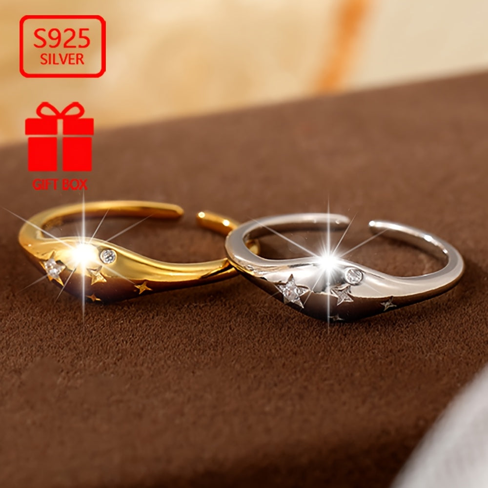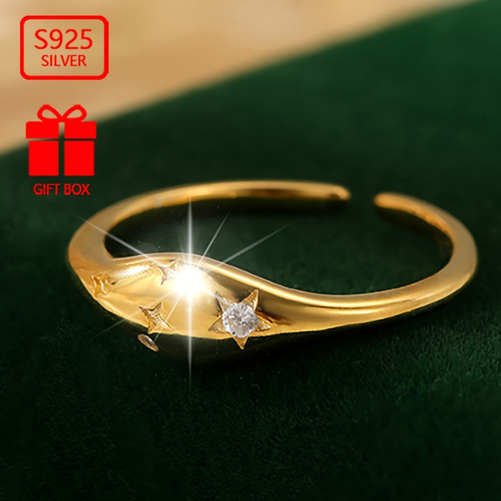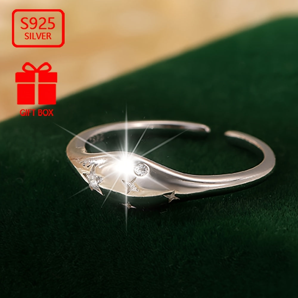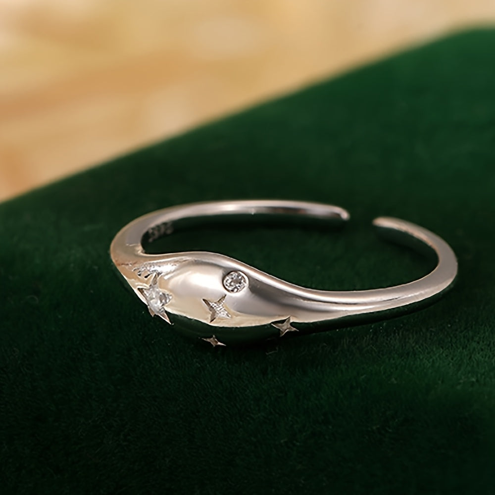 Vana Women's 925 Silver CZ Oval Star Adjustable Ring