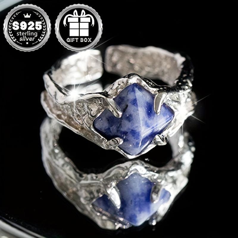 Enhance your look with this stunning Vana ring featuring synthetic zirconia stone. Adjustable sterling silver band is perfect for daily wear, parties, and vacations.