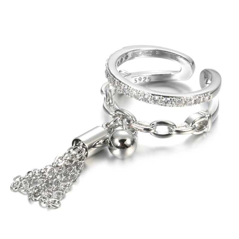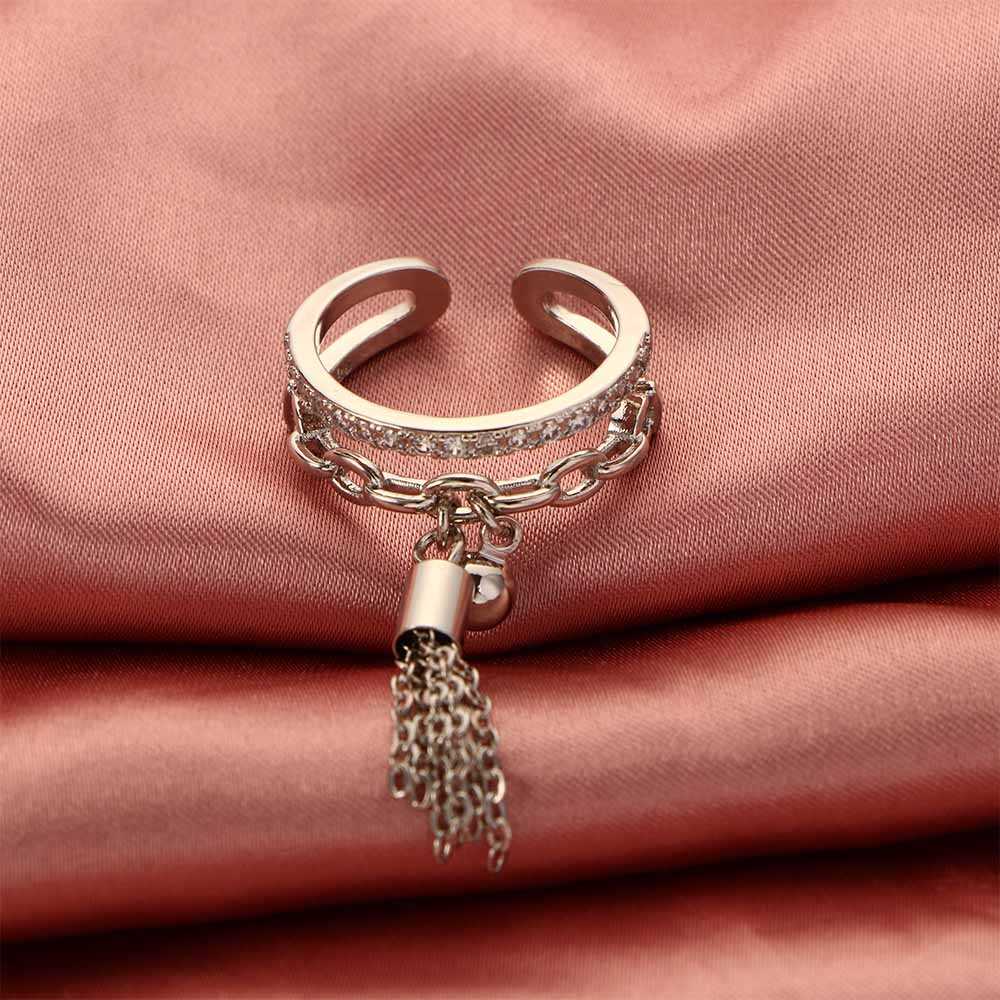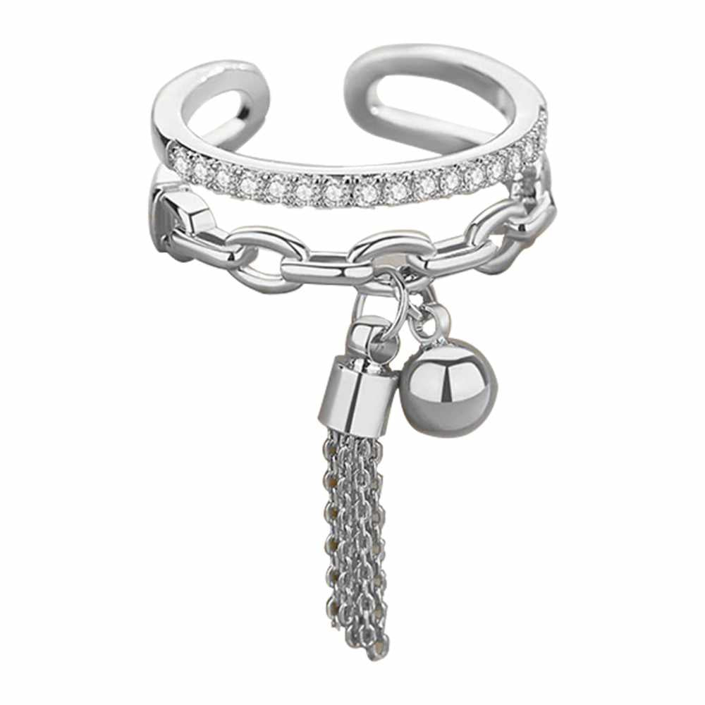 - Détails du produit : Fabriqué en laiton de haute qualité avec des zircones cubiques ornées. La première couche est en zircone pavée et la deuxième couche contient une chaîne à maillons. Cette bague ouverte réglable est livrée avec un pompon et une perle pendante.