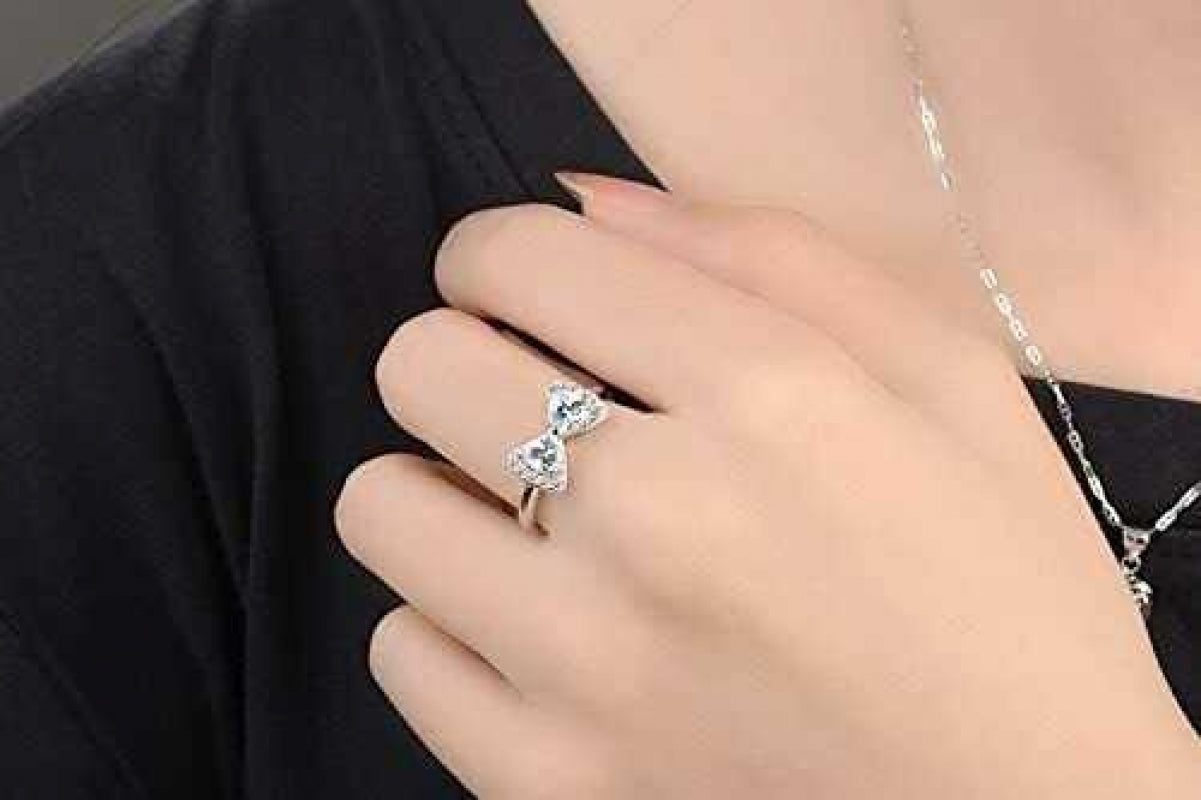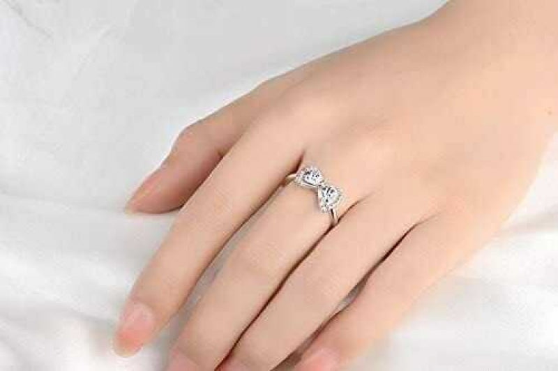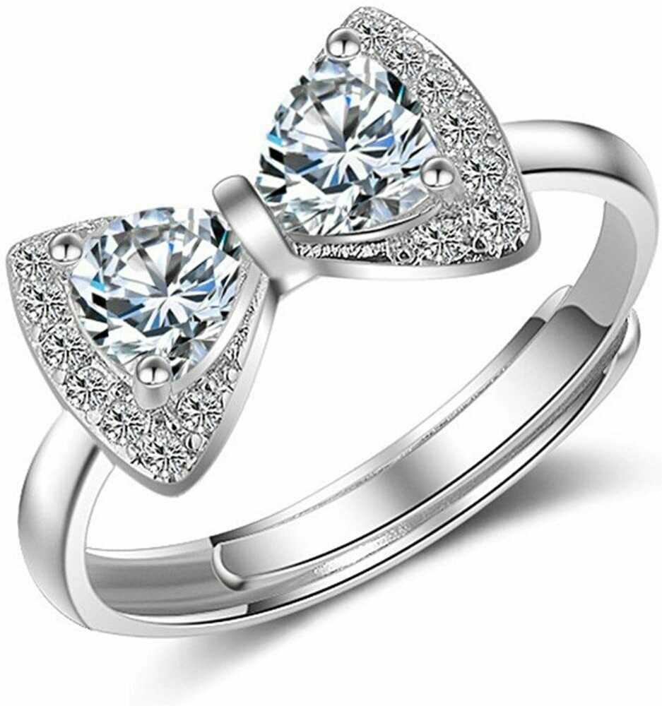 Bague ajustable en forme de nœud papillon plaqué argent pour femme avec zircone cubique