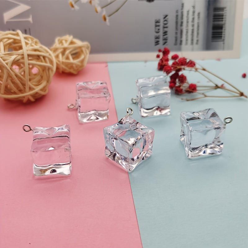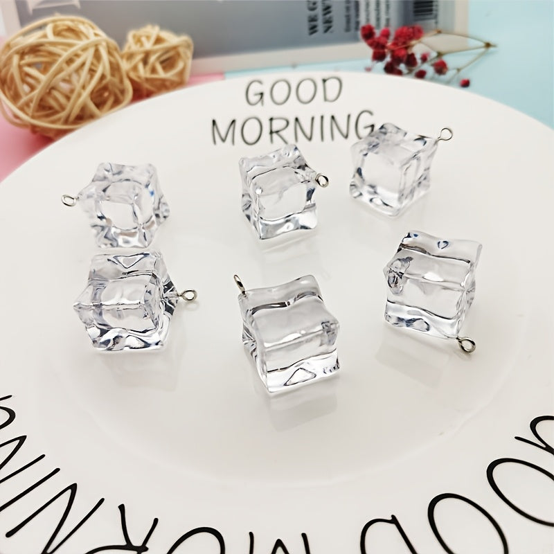 Create stunning jewelry with these clear resin ice cube charms. Each charm measures 10mm and is perfect for crafting unique pieces.