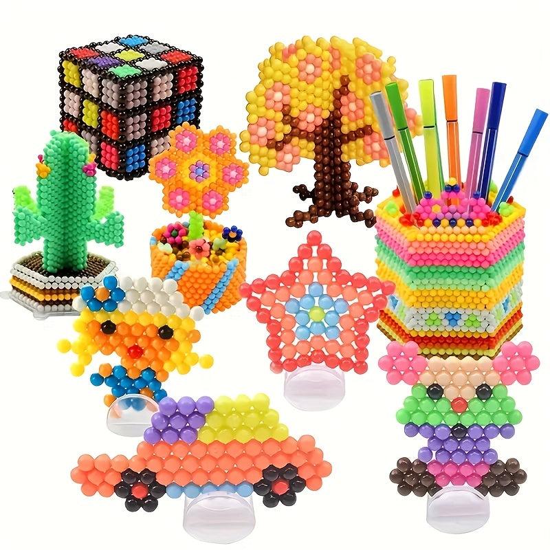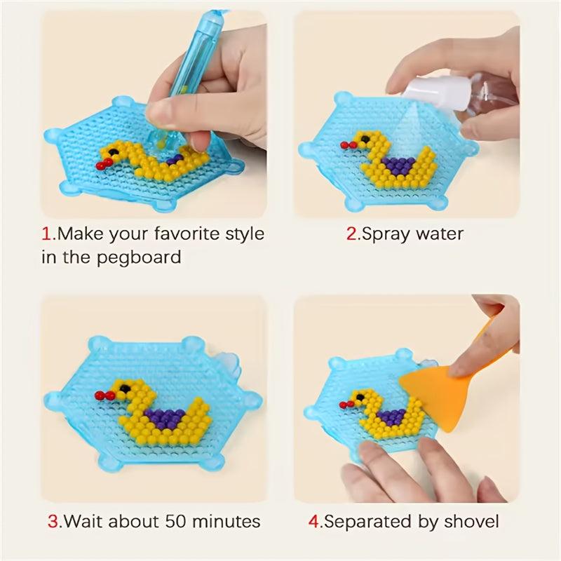 Create beautiful bead jewelry with this 1000pcs box tool combination set. Includes instruction manual, water sticky beads, water fuse beads, 5mm beads, and storage.