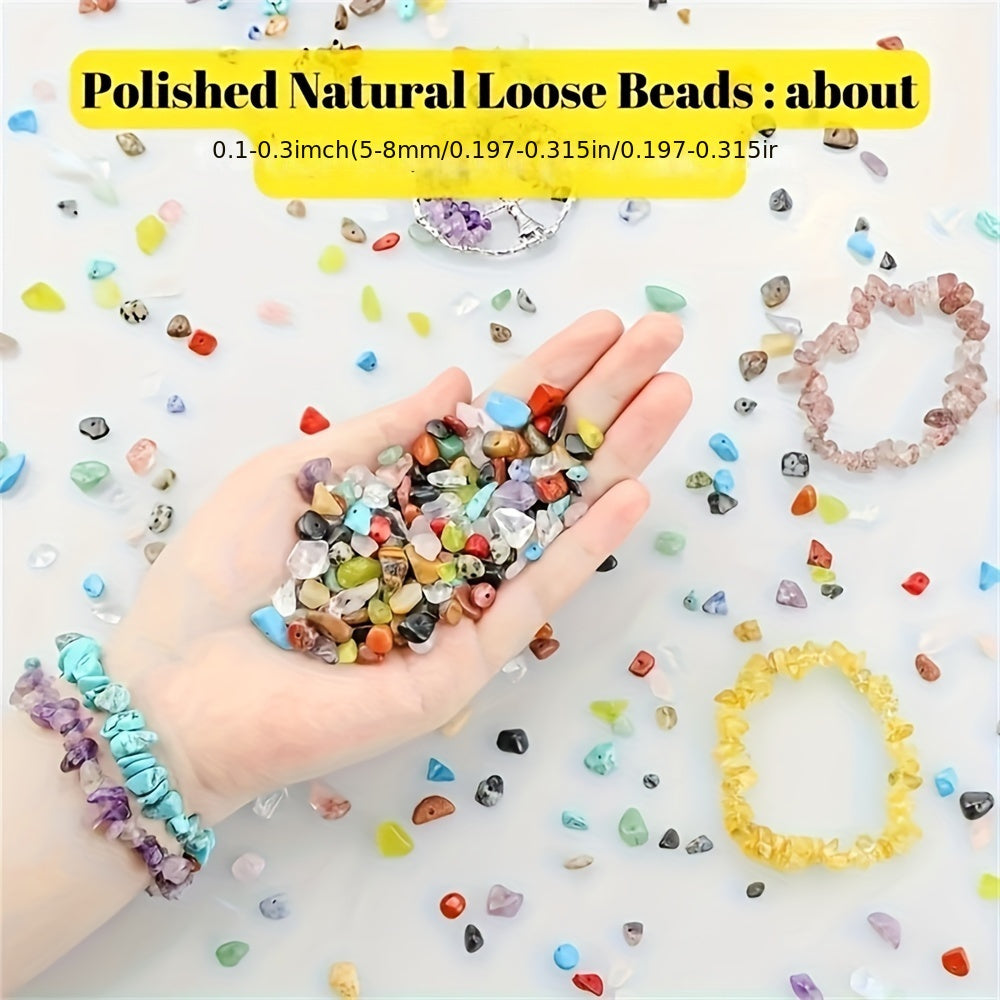This assortment pack contains 1000 pieces of natural stone beads in assorted irregular chip shapes, perfect for creating DIY jewelry, bracelets, necklaces, and crafts with a bohemian flair. The beads range in size from 5mm to 8mm.