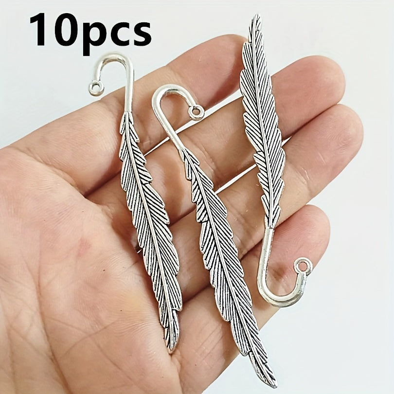 10pcs Antique Alloy Feather Bookmark Handcrafted DIY Accessories
