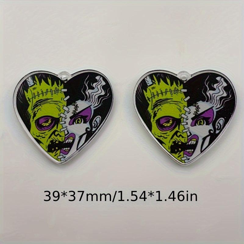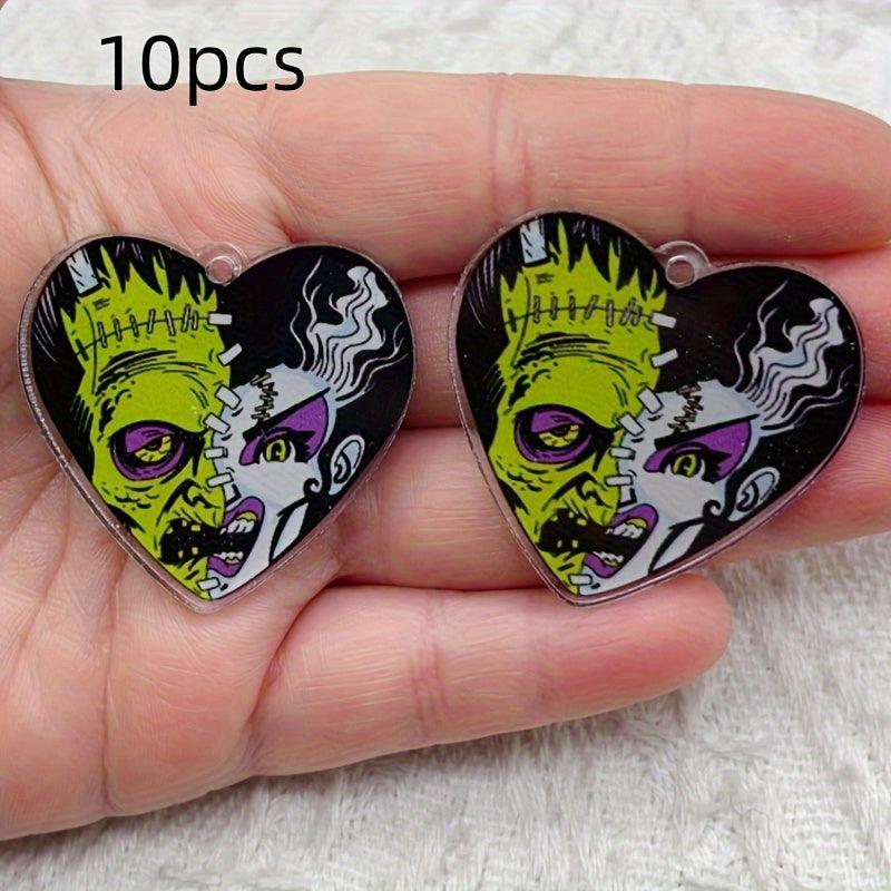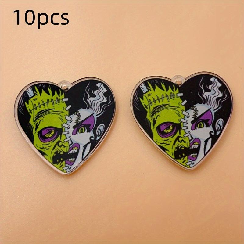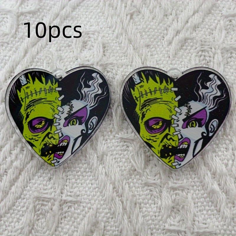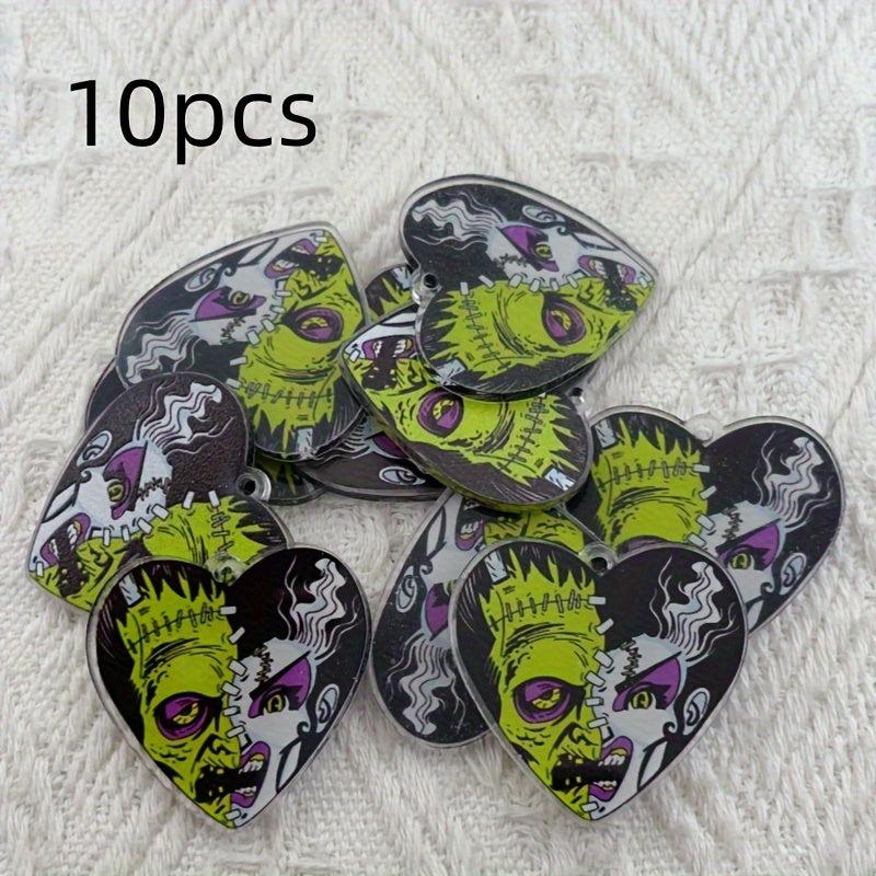 10pcs Halloween Zombie Face Pendants Heart Shaped Gothic Charms Green & Purple