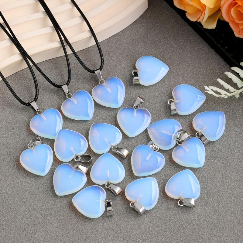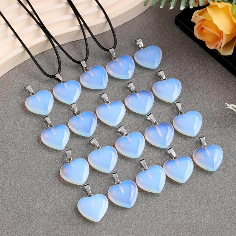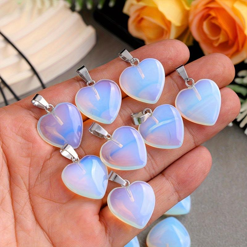 This set includes 10 heart-shaped opal pendants made from natural quartz. Each pendant comes with an adjustable necklace chain, making it perfect for DIY necklace jewelry making.