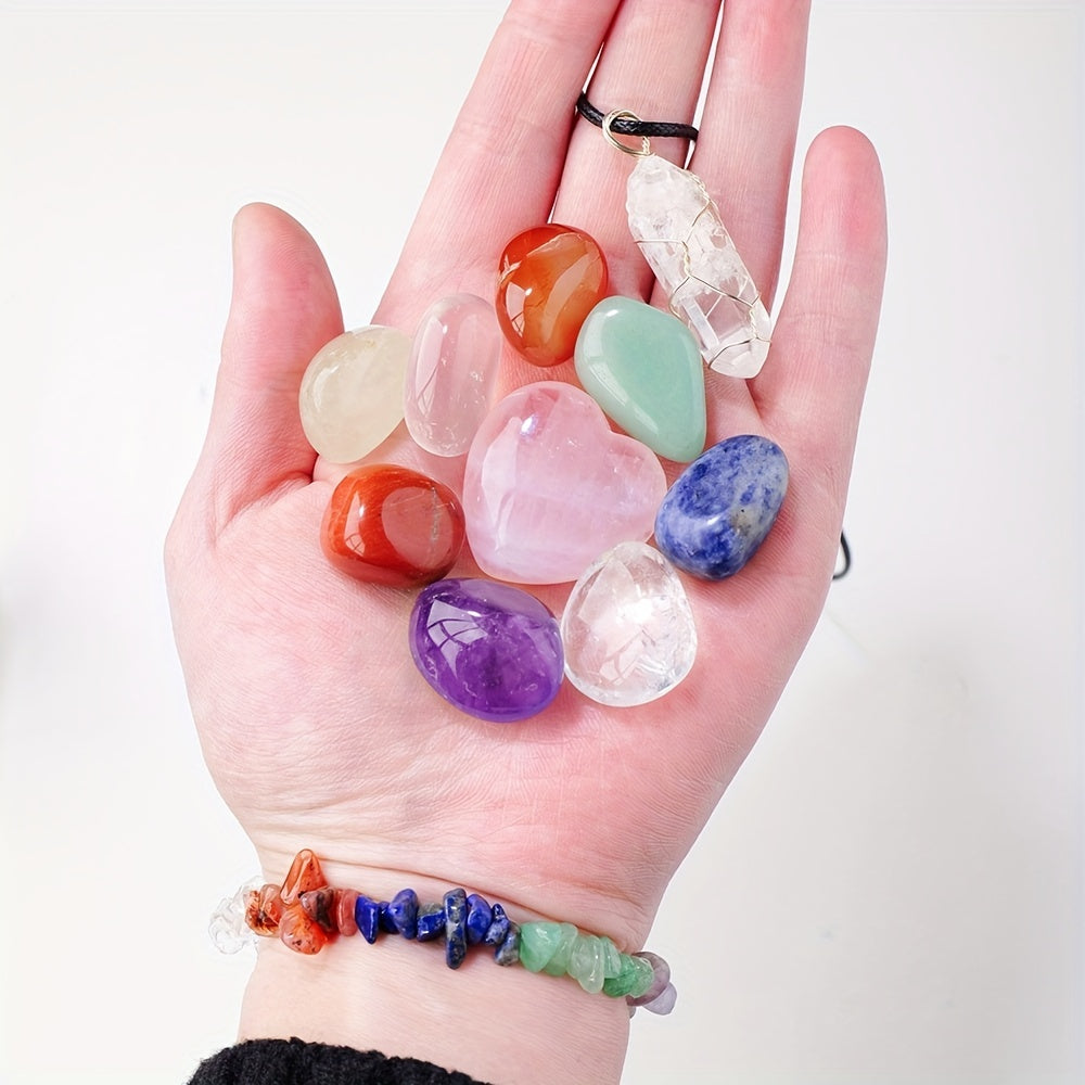 This 11-piece set features irregular heart-shaped natural crystal stone pendants that can be used for necklaces, bracelets, and various jewelry accessories. Perfect for art craft projects, ornaments, and decorations.