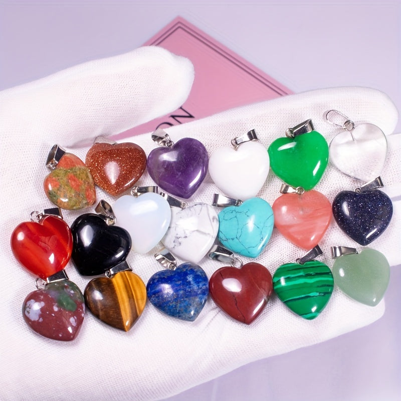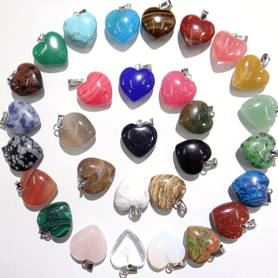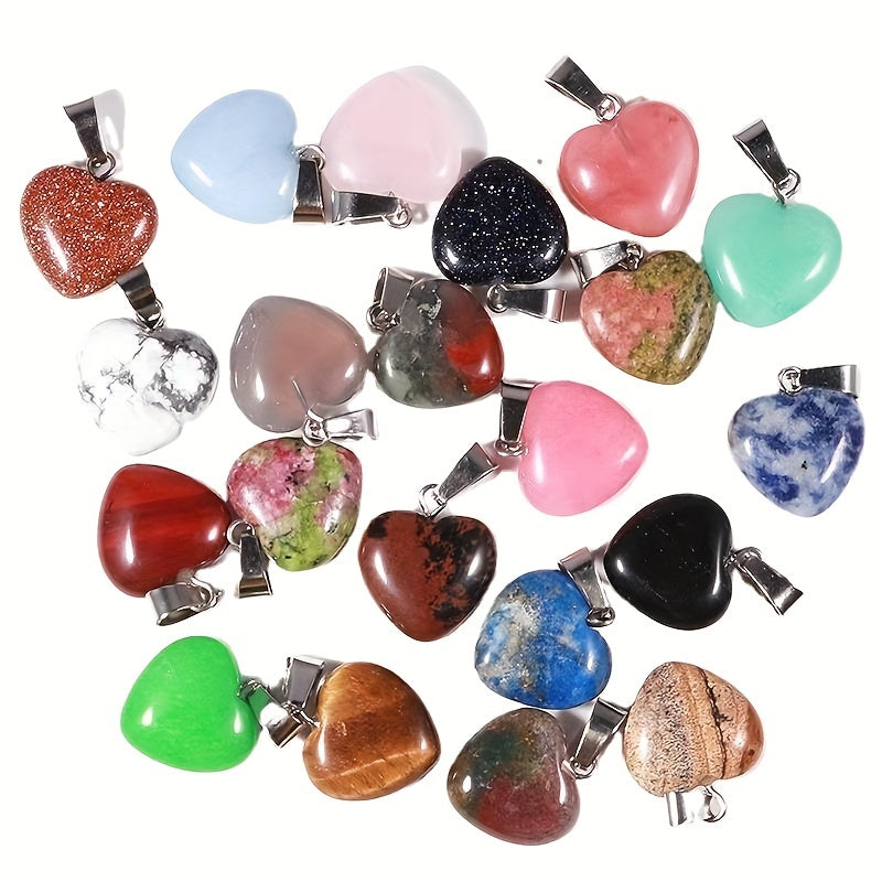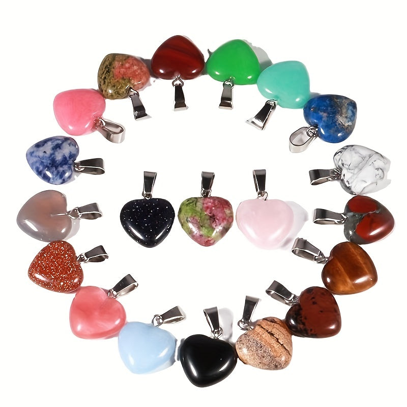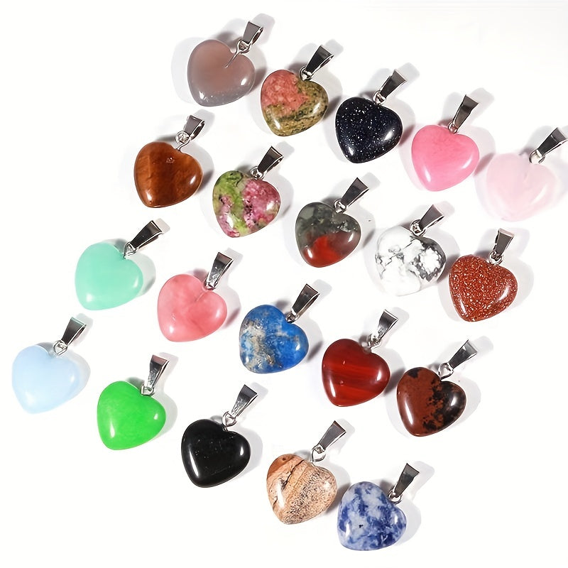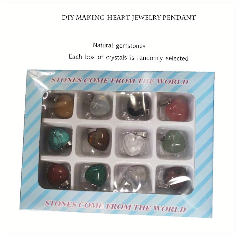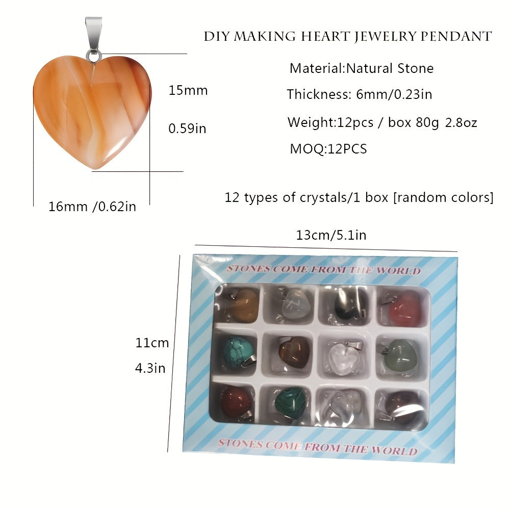 This set includes 12 heart-shaped crystal quartz stone pendants that are perfect for creating beautiful necklaces, earrings, and other accessories. Each pendant is natural and unique, adding a touch of elegance to your handmade jewelry pieces.