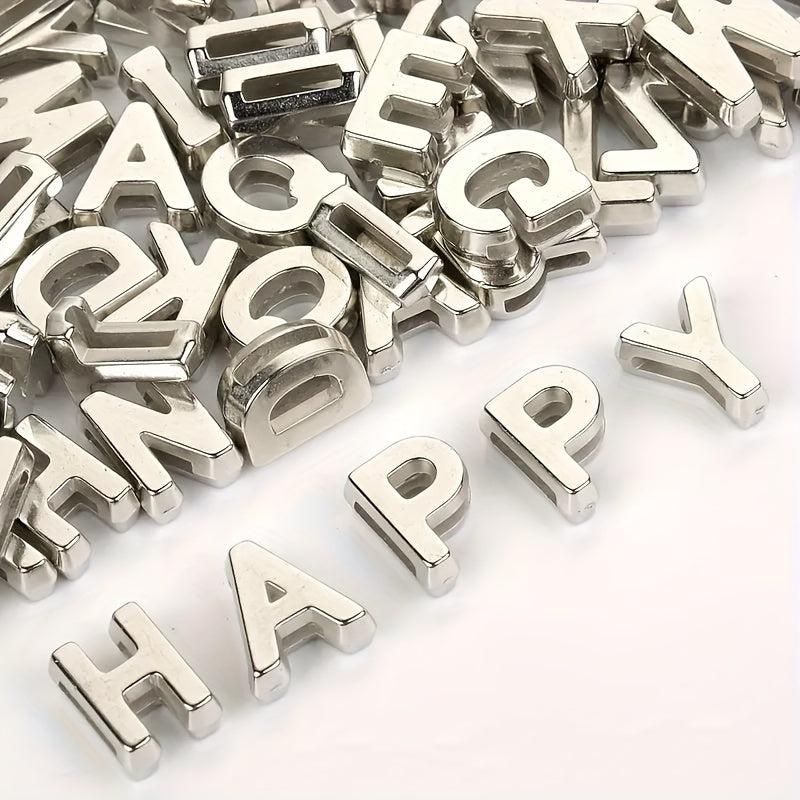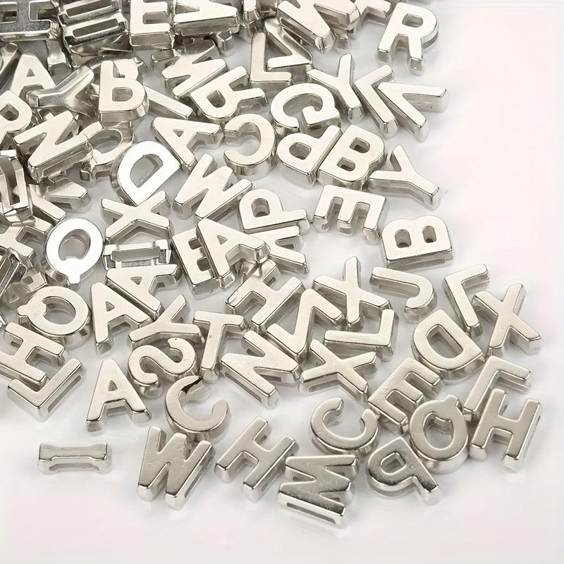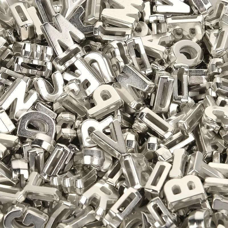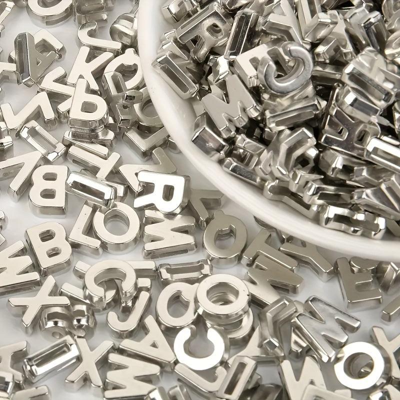 Get creative with these silvery hollow letter beads for making bracelets, necklaces, and other jewelry. Perfect for DIY projects!