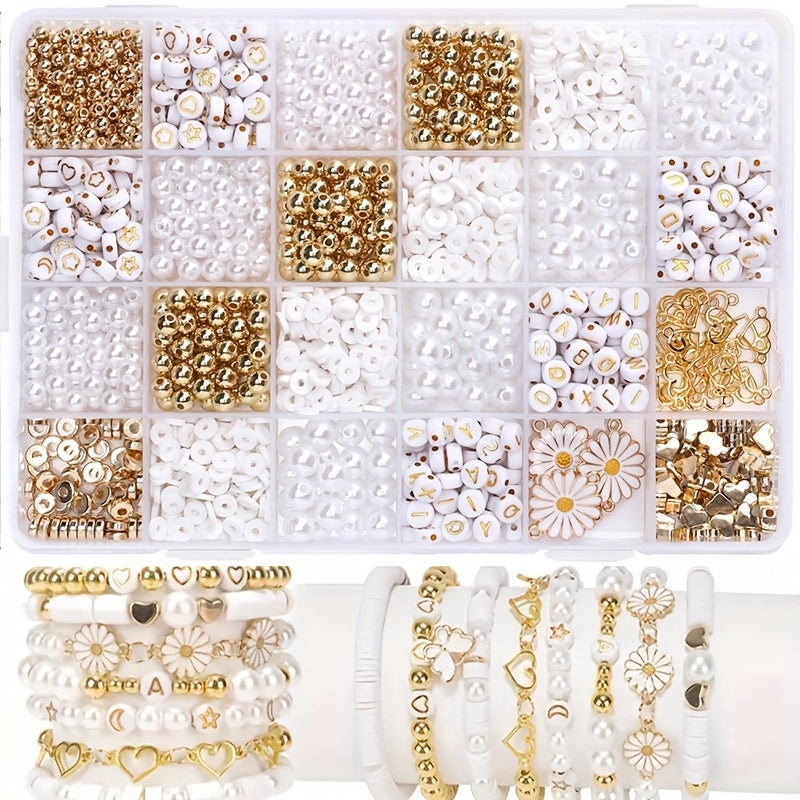 Create beautiful jewelry with this DIY kit featuring simplistic daisy charms and polymer clay beads. Perfect for spa-inspired designs.