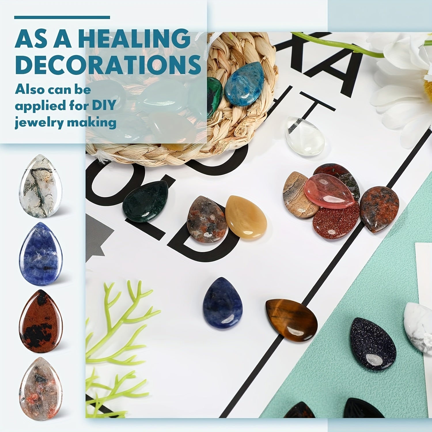 This set includes 15 teardrop crystal stones that are perfect for relieving anxiety and stress. Each stone is designed to fit comfortably in your hand and has a smooth texture.