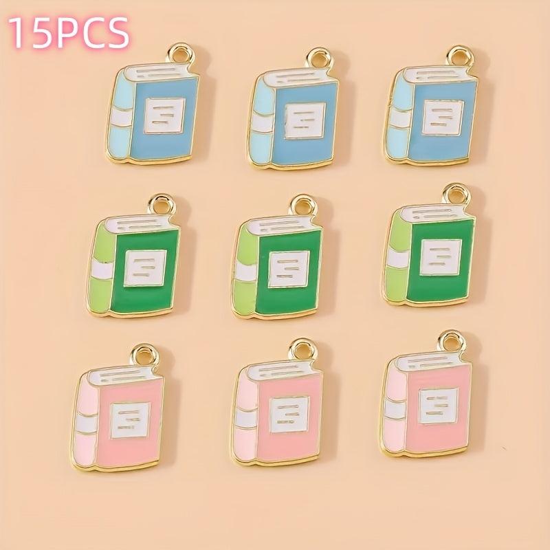 Get creative with this set of 15 cartoon book charms, perfect for earrings and keychain crafting. Add a touch of fun to your accessories!
