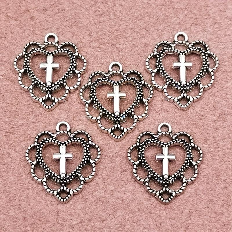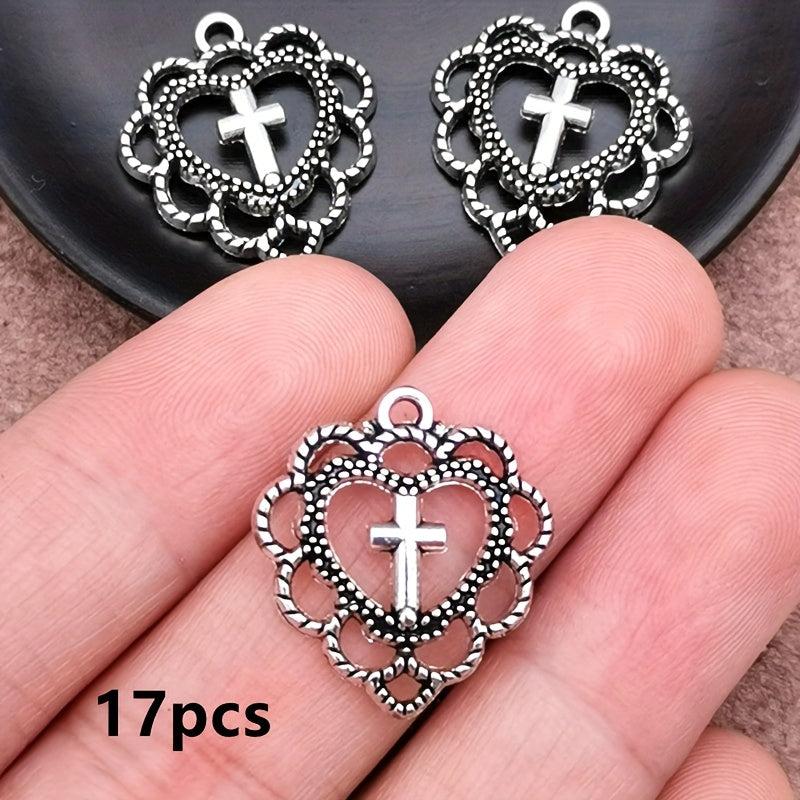This set includes 17 Bohemian cross heart charms for DIY jewelry making. Each charm measures 22mm x 20mm, perfect for creating unique necklaces and earrings.