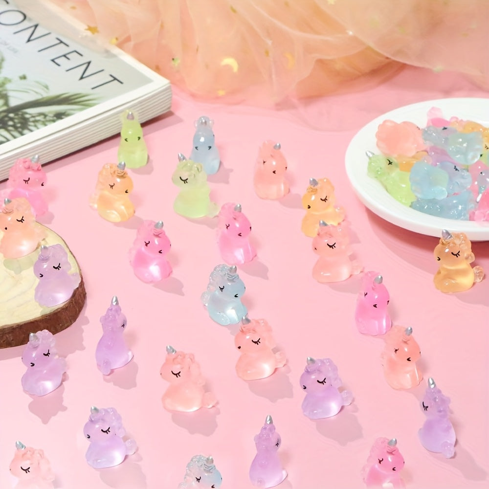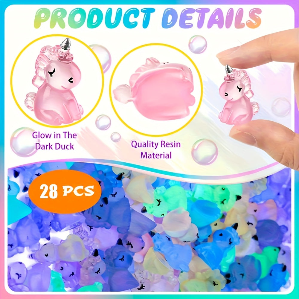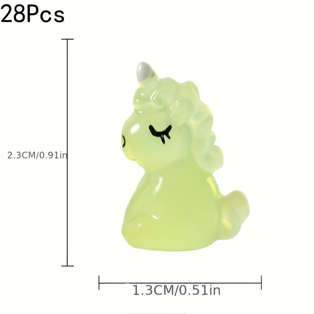 Add a magical touch to your DIY projects with these 28 glow-in-the-dark mini unicorn figurines. Made of resin, these adorable unicorns will light up your crafts and jewelry designs.