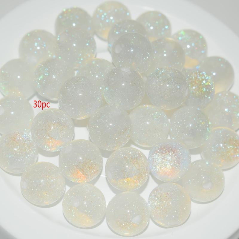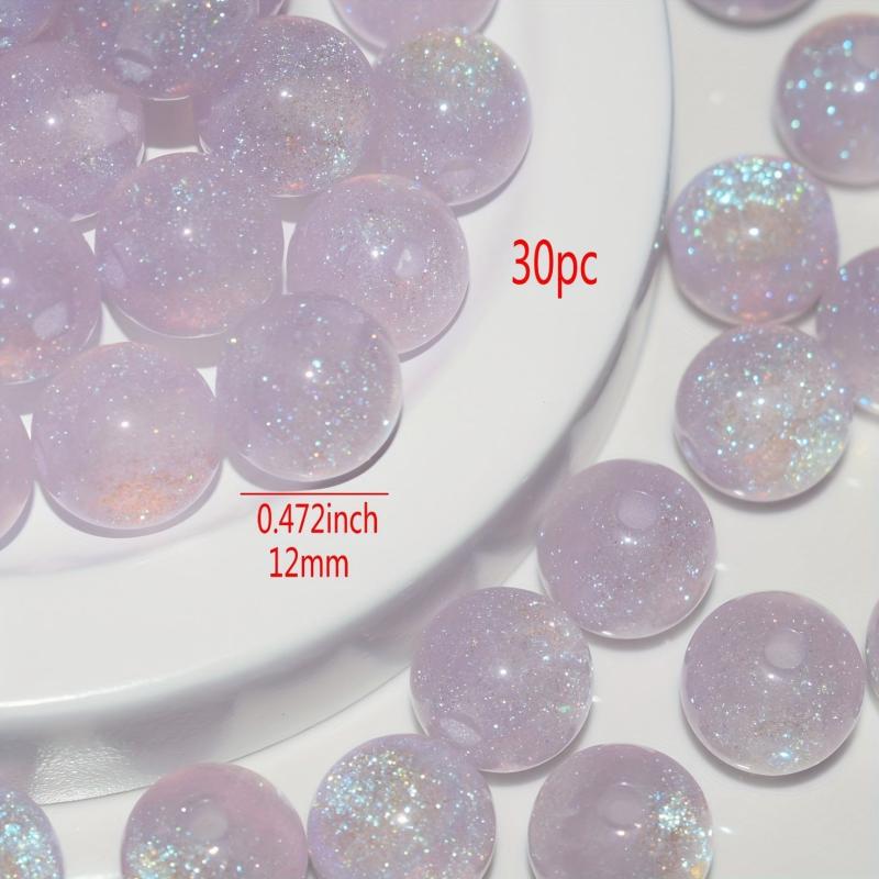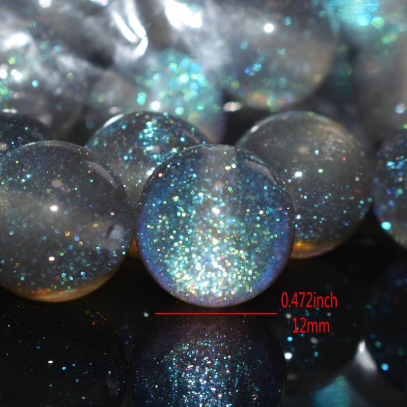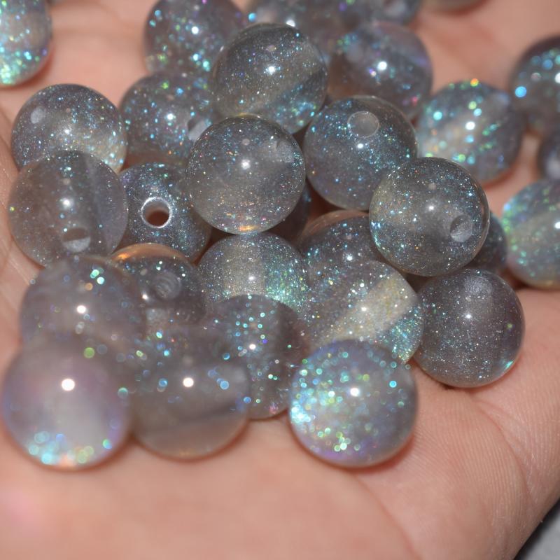 30pcs 12mm Grey Sparkle Glitter Round Beads for Jewelry Making