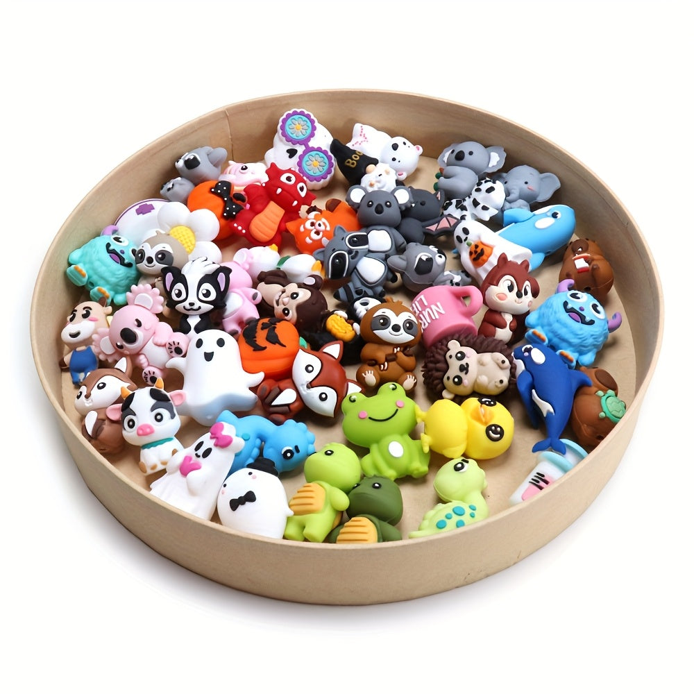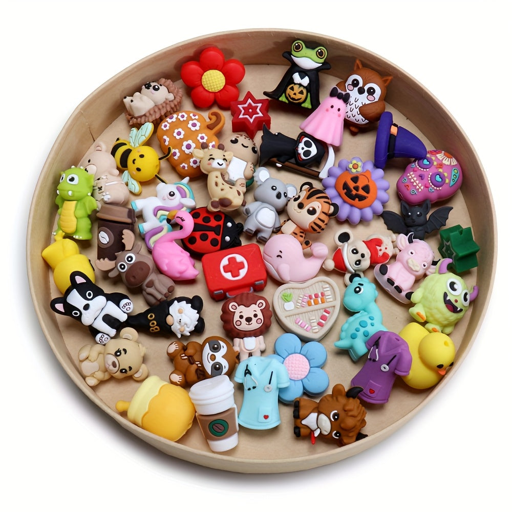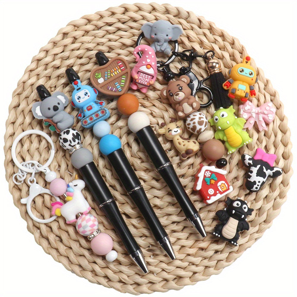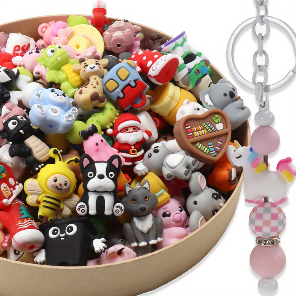 Explore your creativity with these 18pcs 3D animal silicone beads perfect for making keychains. Also includes 36pcs of festive style scattered beads for pen decor, bracelets, necklaces, and craft ideas.