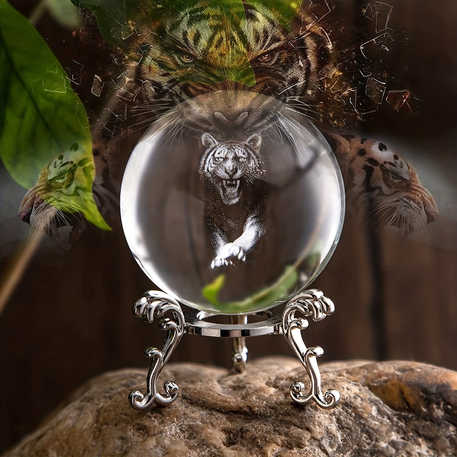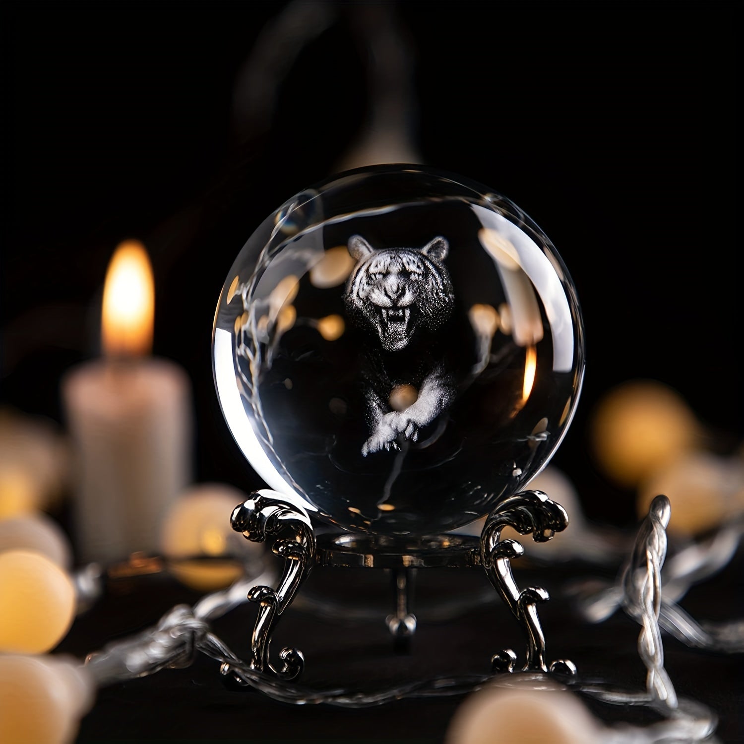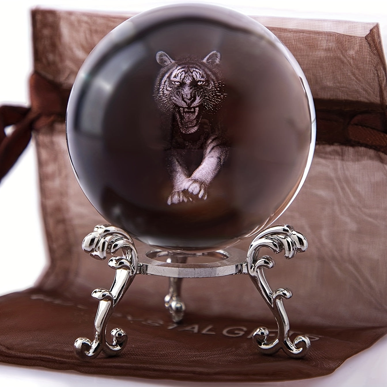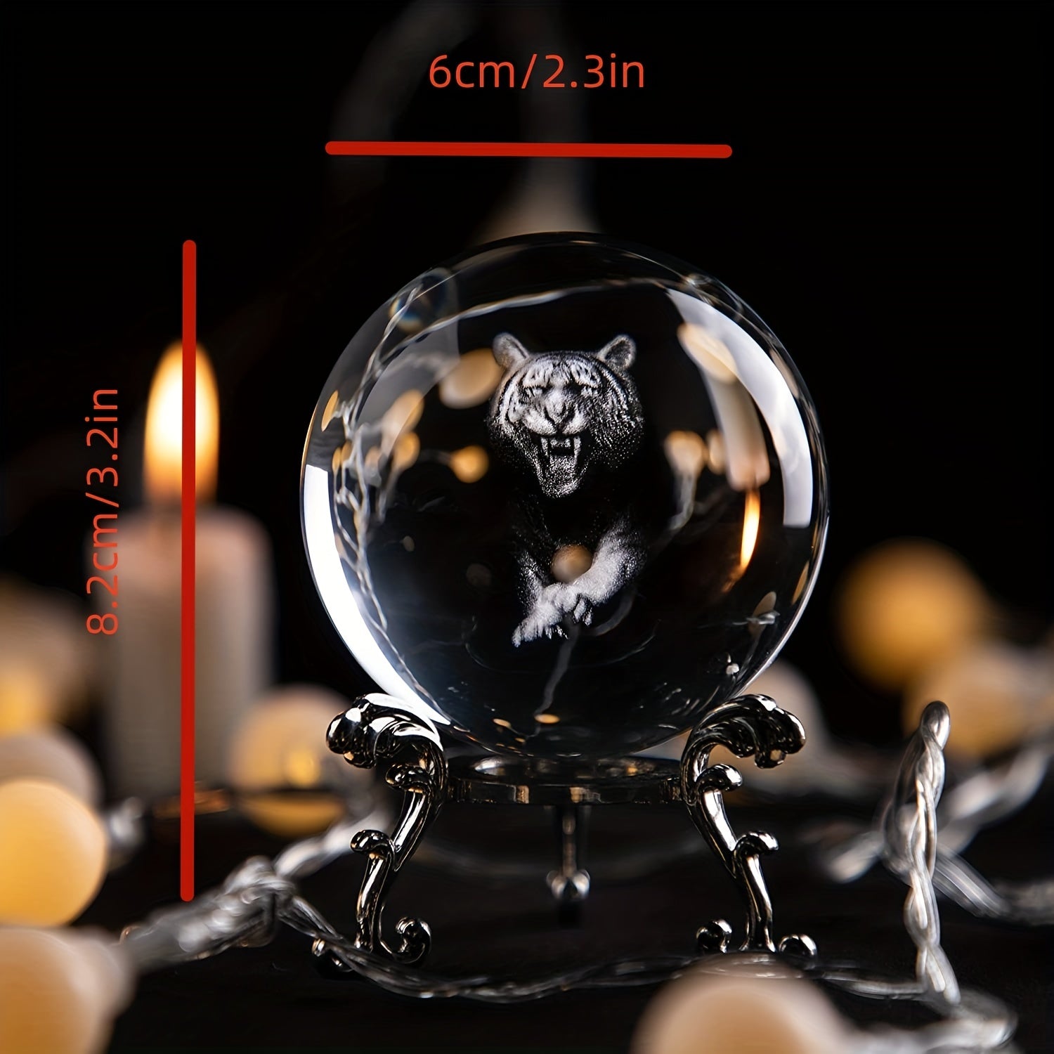 Add a touch of elegance to your decor with this 3D laser-engraved tiger figurine crystal ball. Perfect for display or as a gift.