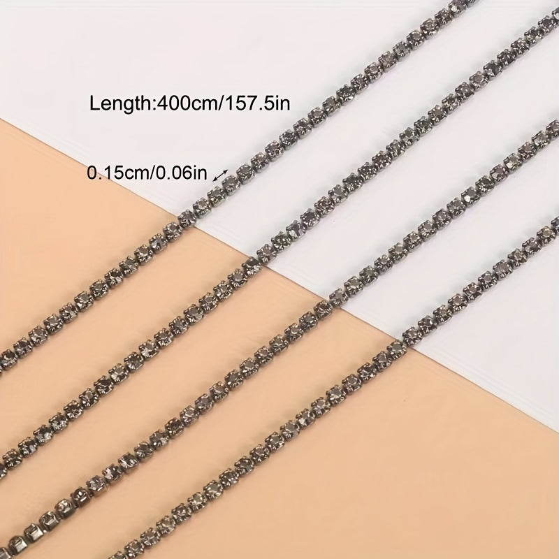 Add sparkle to your shoes, clothing, nail art, headwear, and DIY projects with this 400cm rhinestone chain. Perfect for creating glamorous and eye-catching designs.