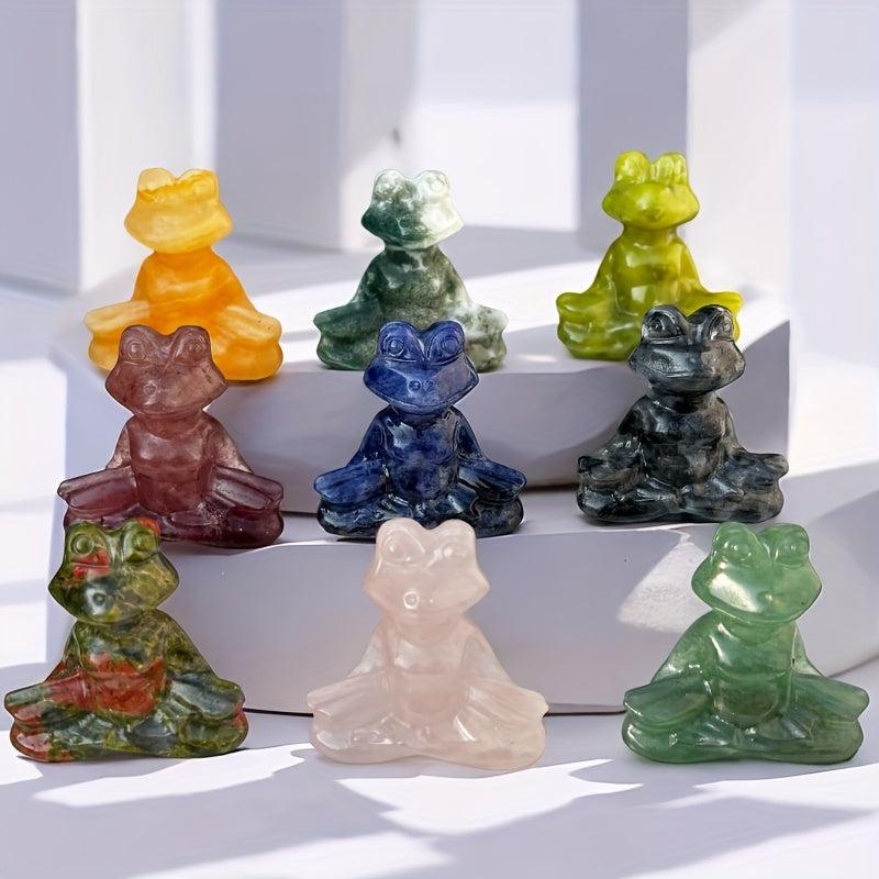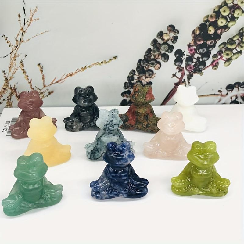 This 40mm Crystal Carving Yoga Frog Stone is a unique and creative decoration piece for your home or office. Made from natural synthetic gemstone, it is perfect for adding a touch of charm to any space. Also great as a Father's Day gift or for jewelry making projects.