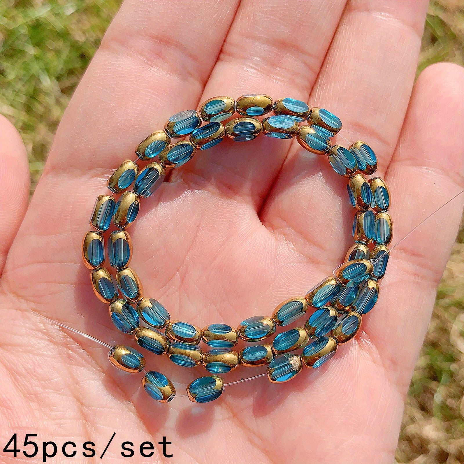 45pcs Faceted Crystal Beads Lake Golden Edge Glass Beads Spacer DIY Bracelet
