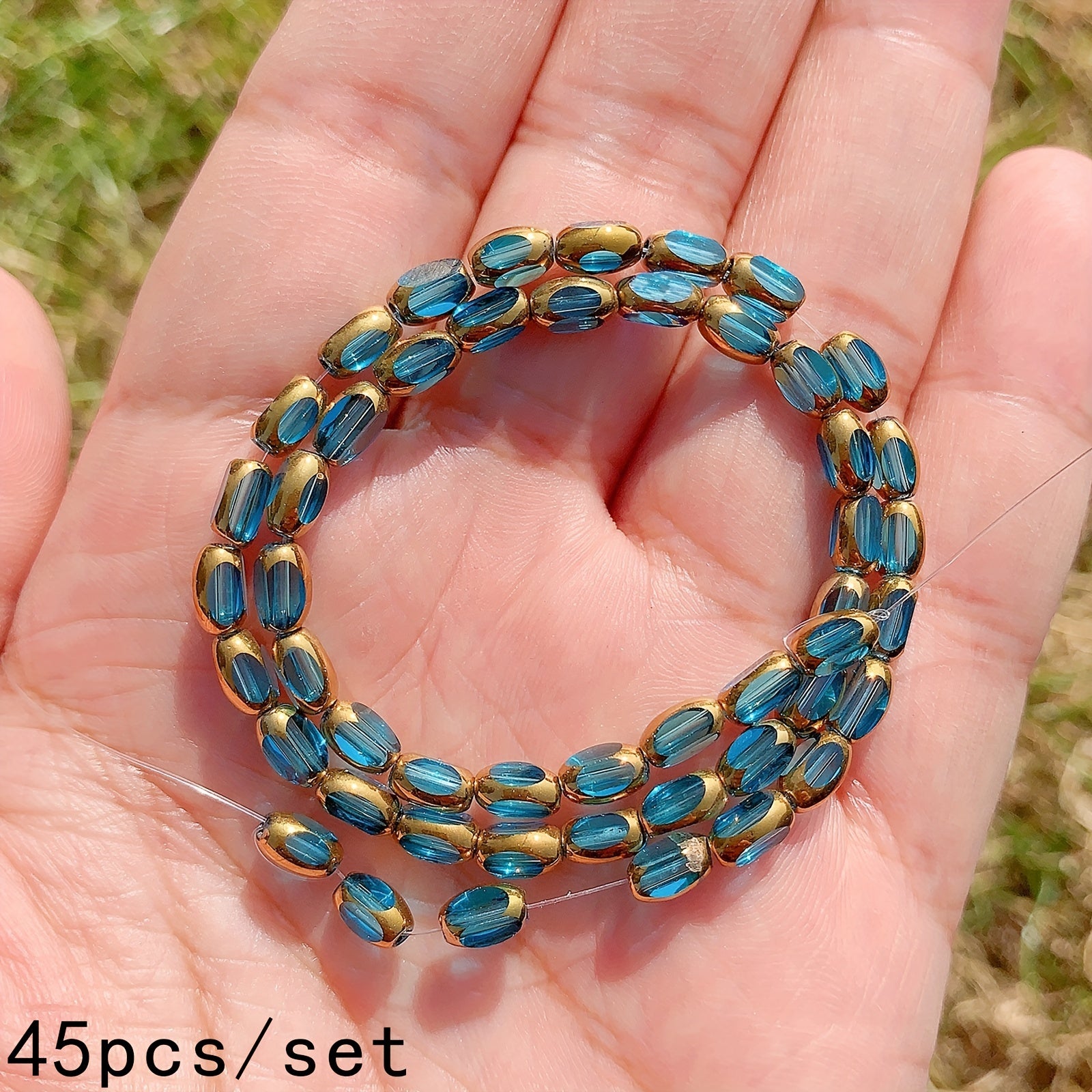 Enhance your jewelry creations with this set of 45 faceted crystal beads featuring a lake golden edge. Perfect for DIY bracelets and other accessories.
