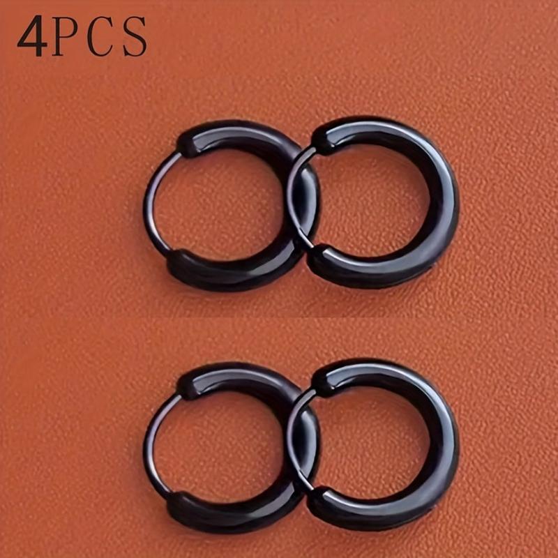 4pcs Resin Ring Earrings & Invisible Studs, No Piercing, Comfortable & Safe
