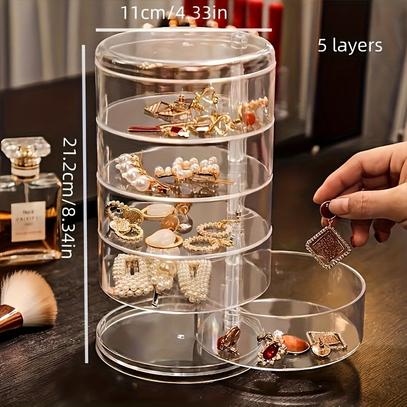5 Tier Rotating Jewelry Organizer Box Large Capacity Dust Proof PET Material