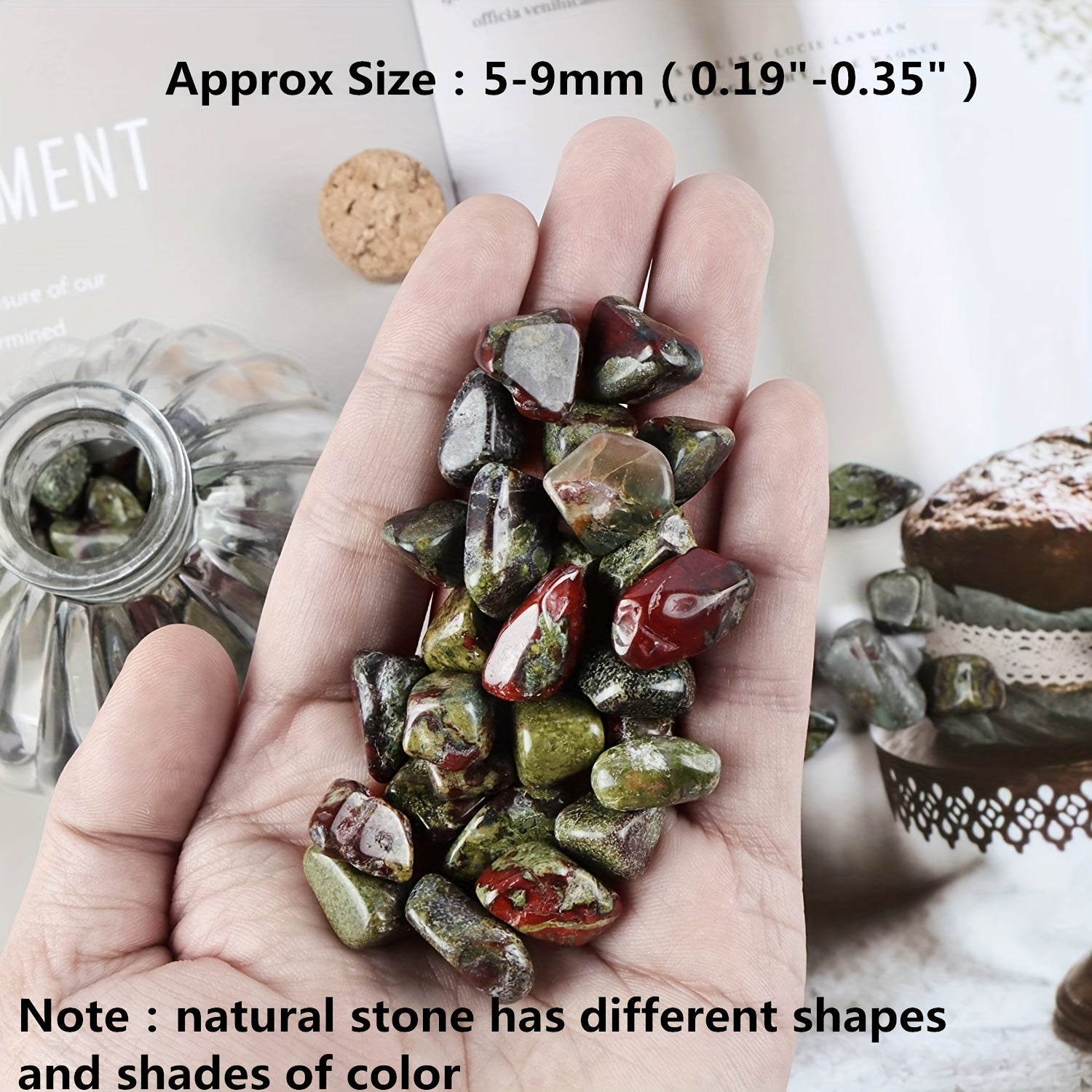 Enhance your energy therapy practice with these healing dragon blood stone chips. Perfect for reiki, yoga, houseplants, and jewelry making.