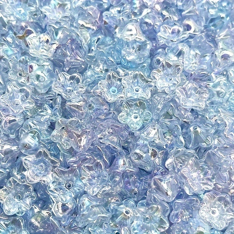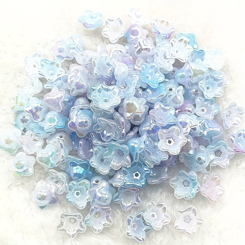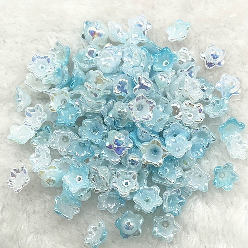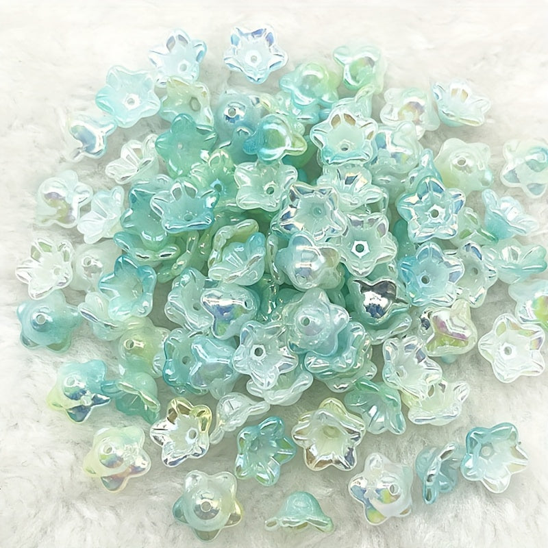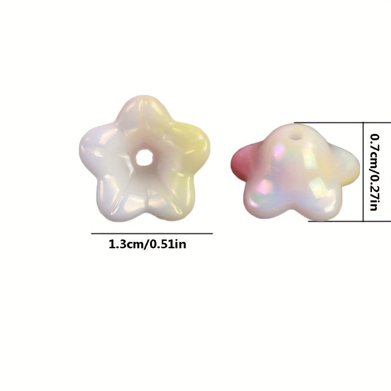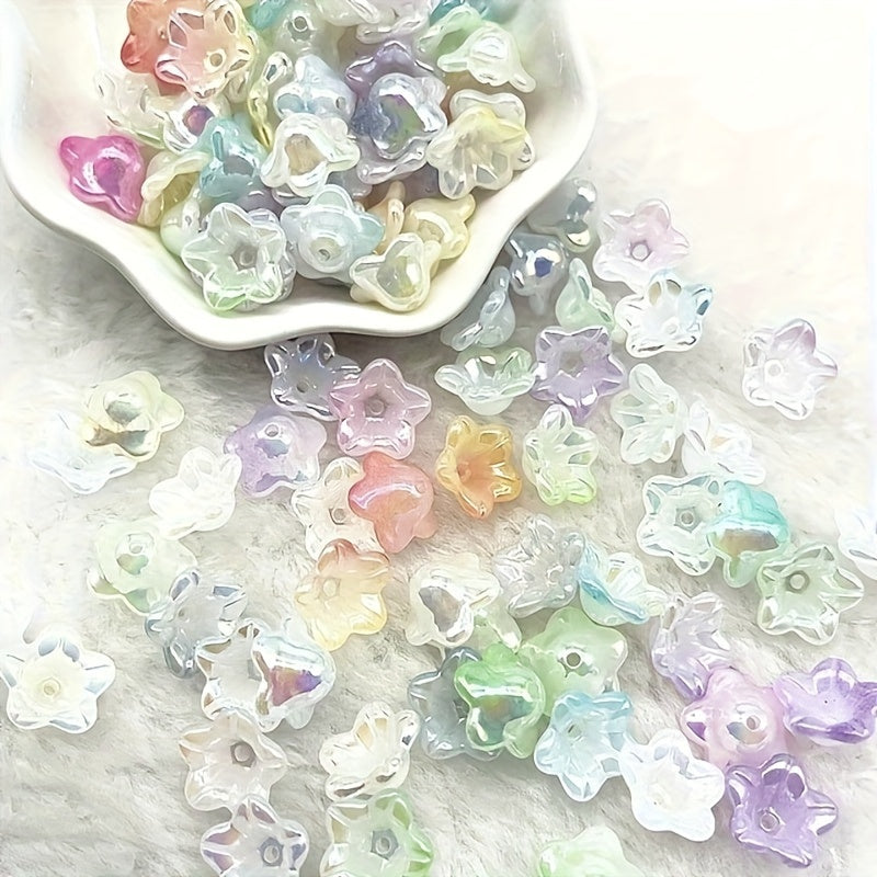 Create stunning jewelry with these vibrant gradient acrylic bellflower bead caps. The set includes 50 beads in pastel to bright colors with a glossy finish, perfect for bracelets and necklaces.