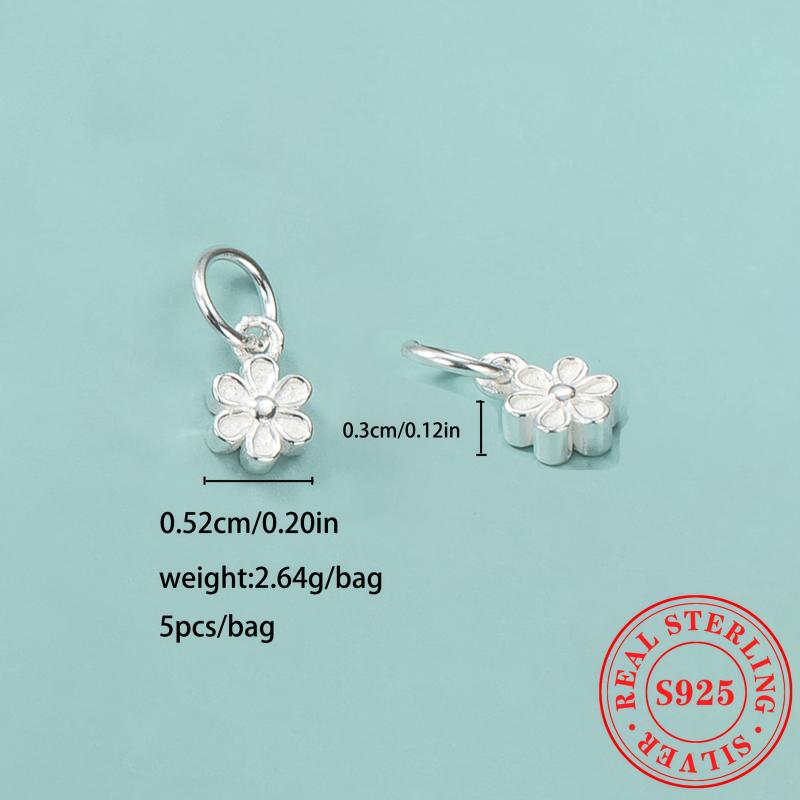 Get this pack of 5 S925 sterling silver small flower pendants, perfect for adding a touch of elegance to your DIY beaded bracelet. These accessories are ideal for crafting materials.