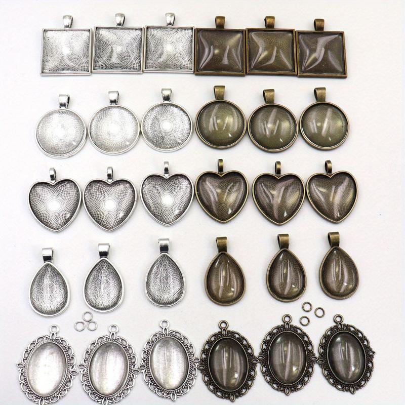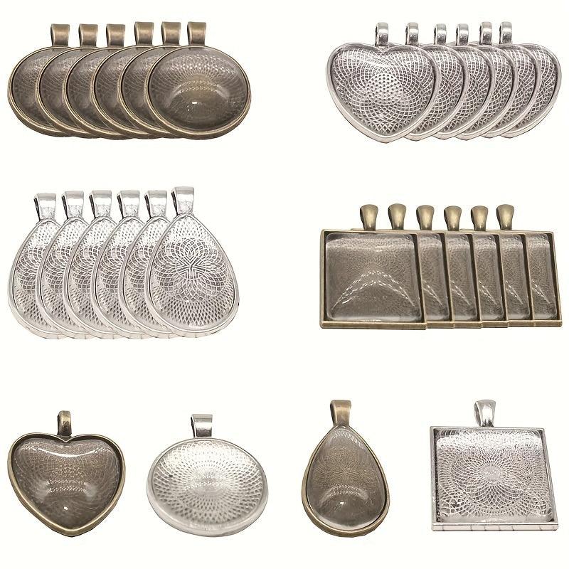 This set includes 66 pendant trays with glass cabochons, perfect for making pendants and jewelry. The trays come in 5 different styles to suit your creative needs.