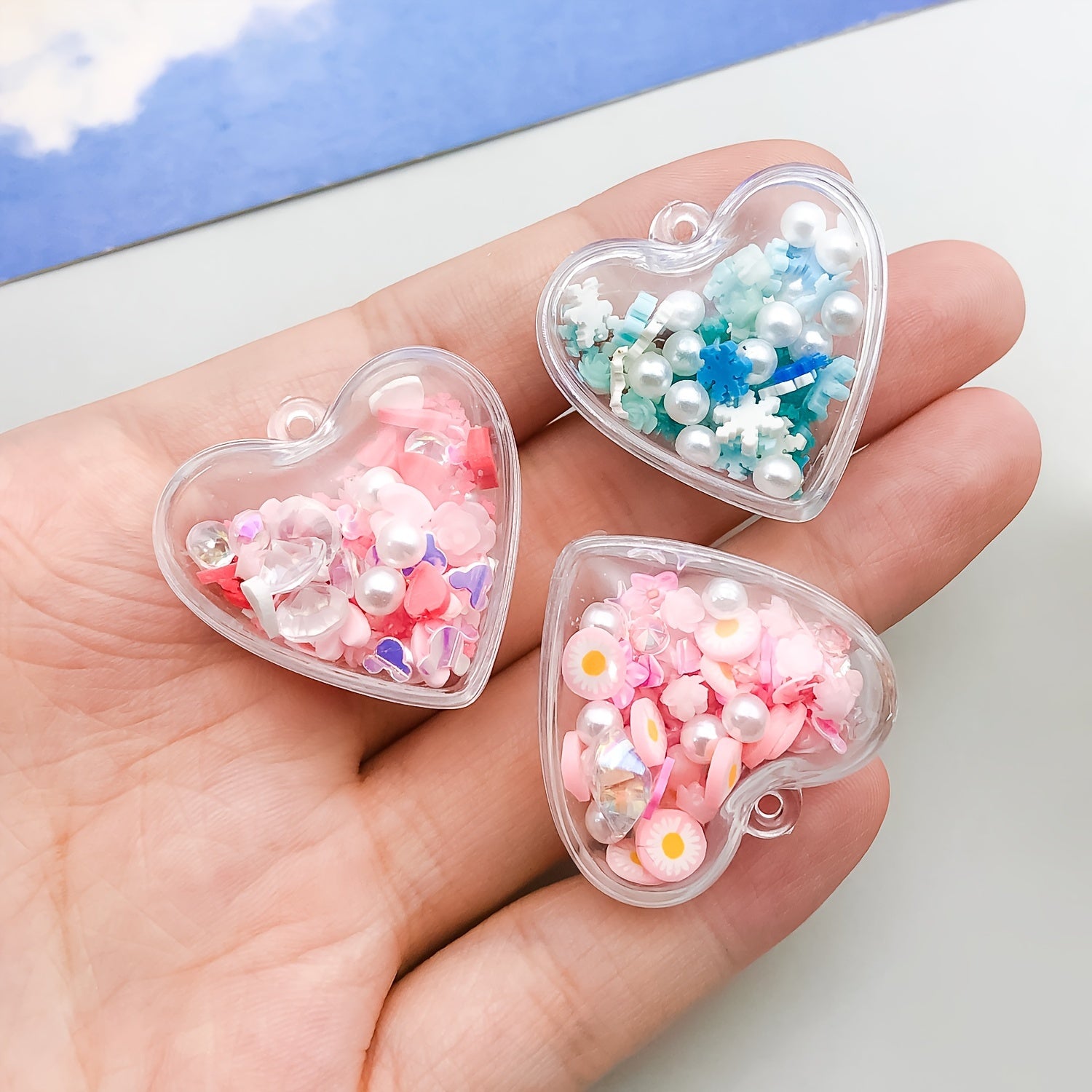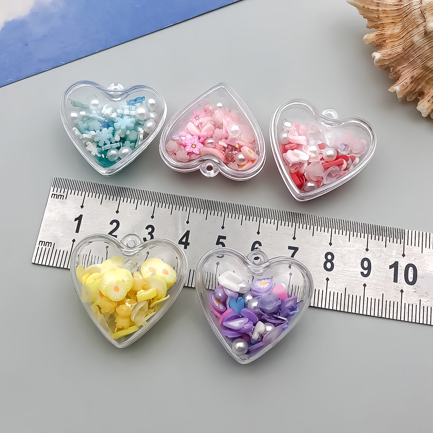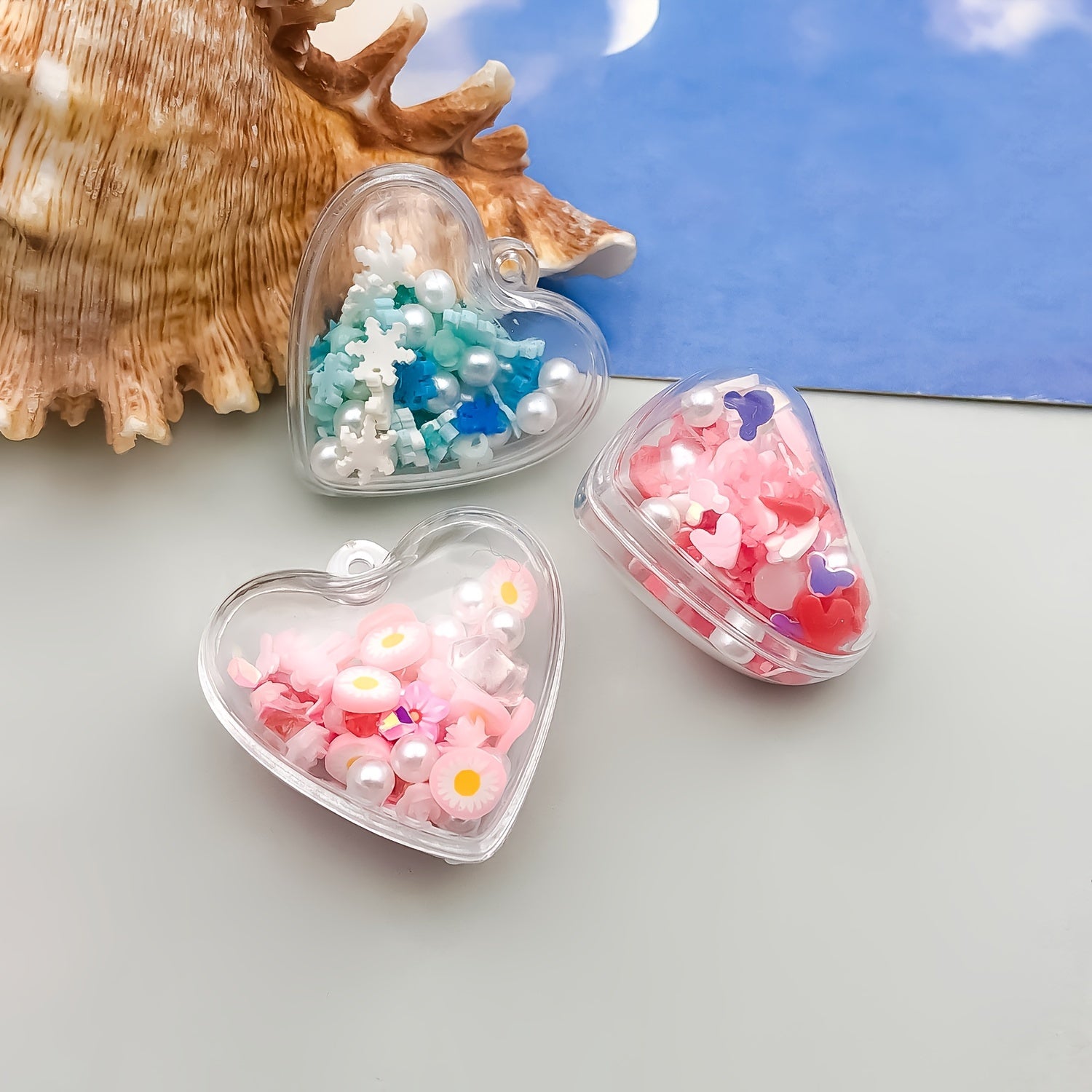 Add a touch of boho style to your jewelry with these heart-shaped resin charms. These charms glow in the dark, making them a unique addition to your collection.