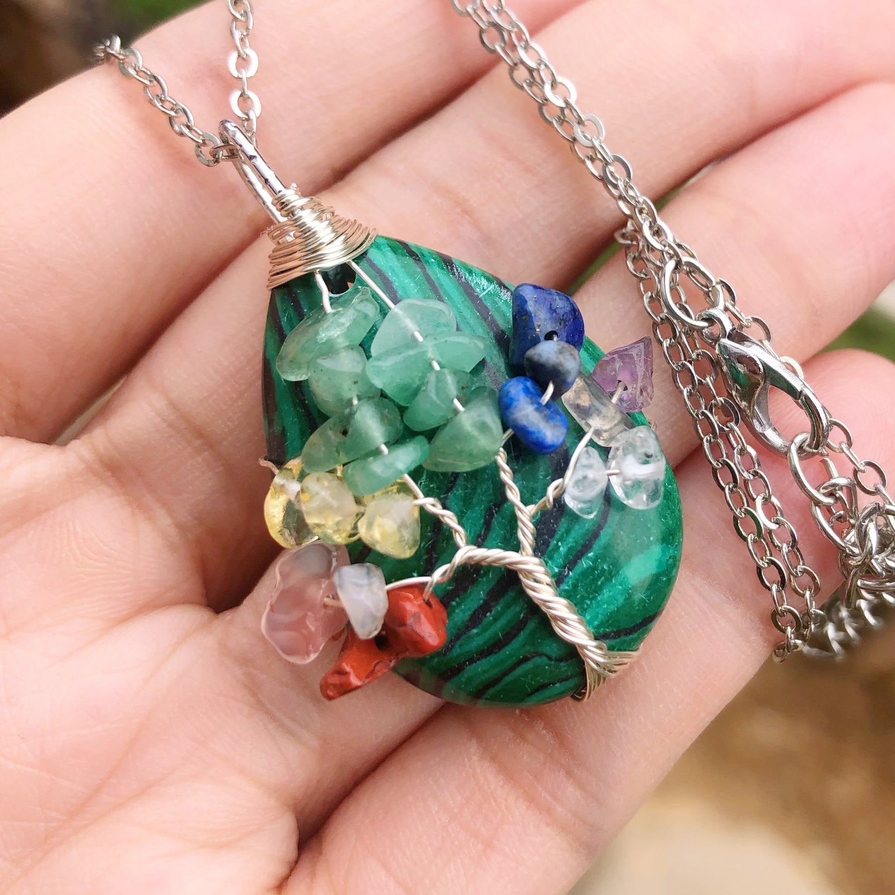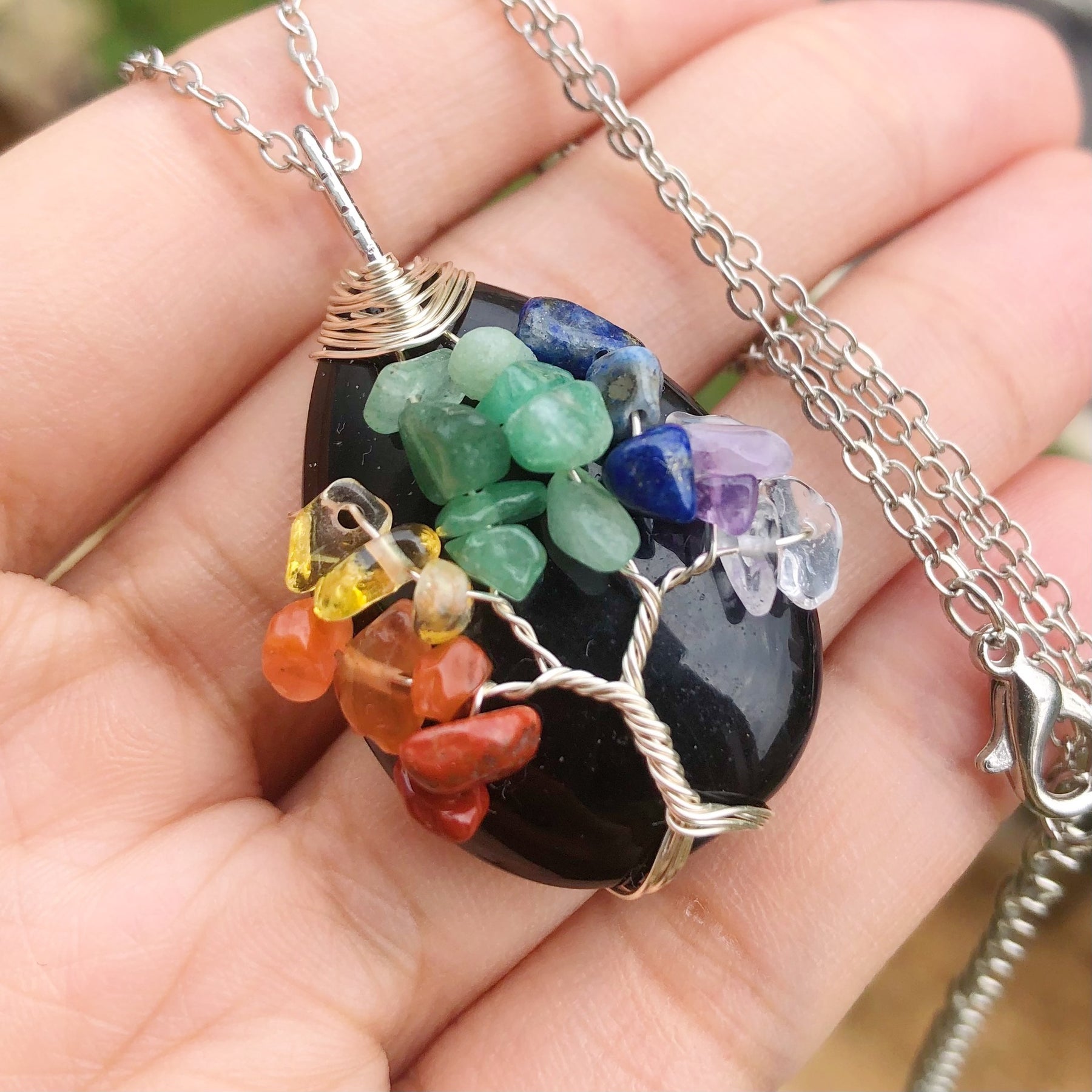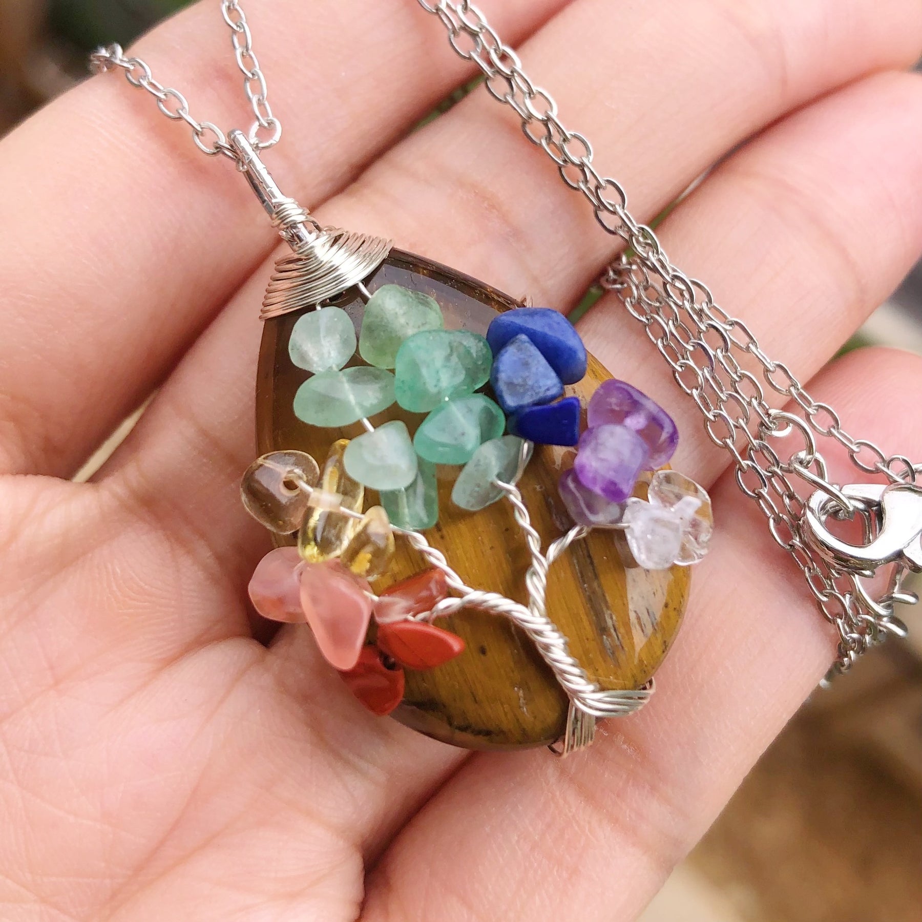 • Tree of Life design with 7 chakra agate gemstones