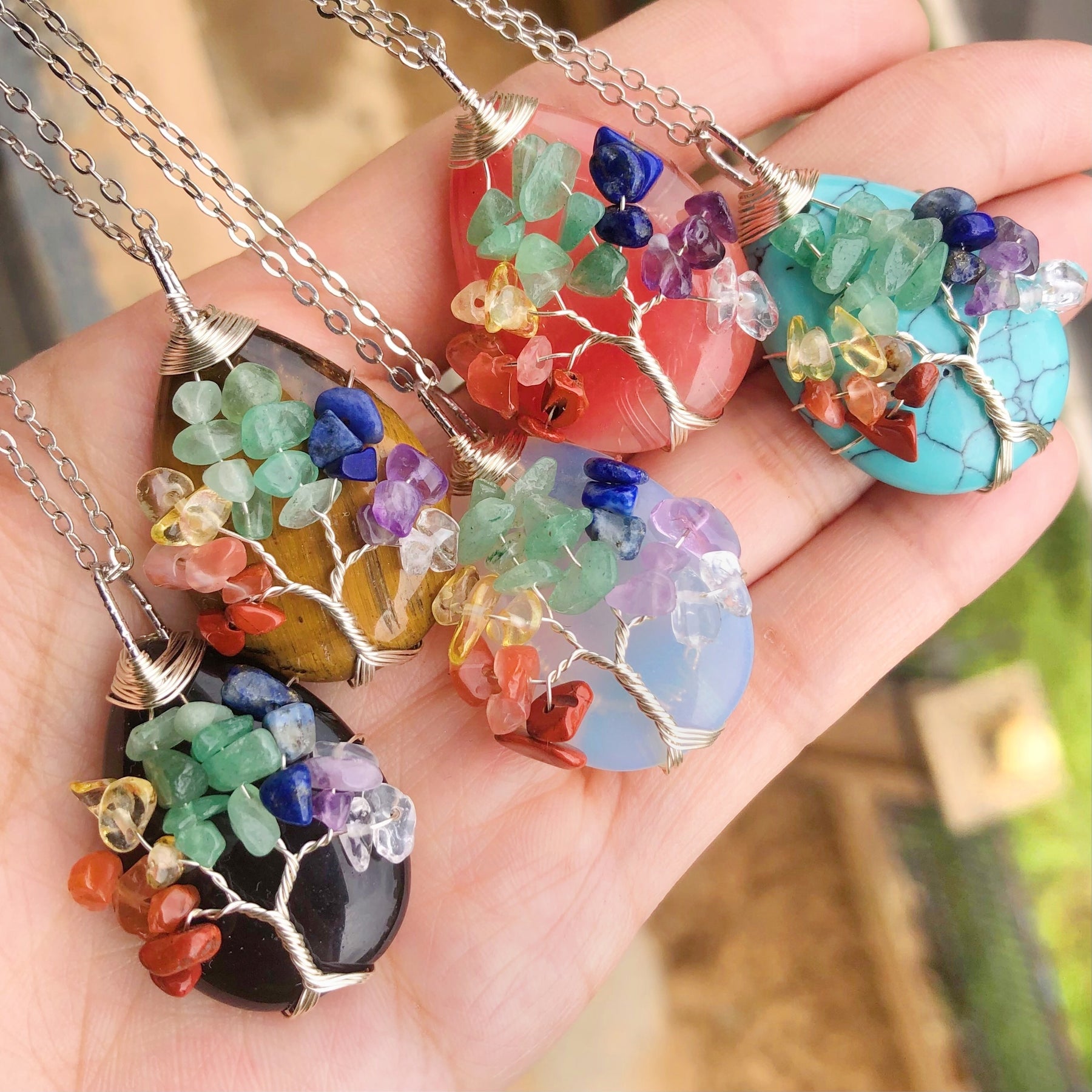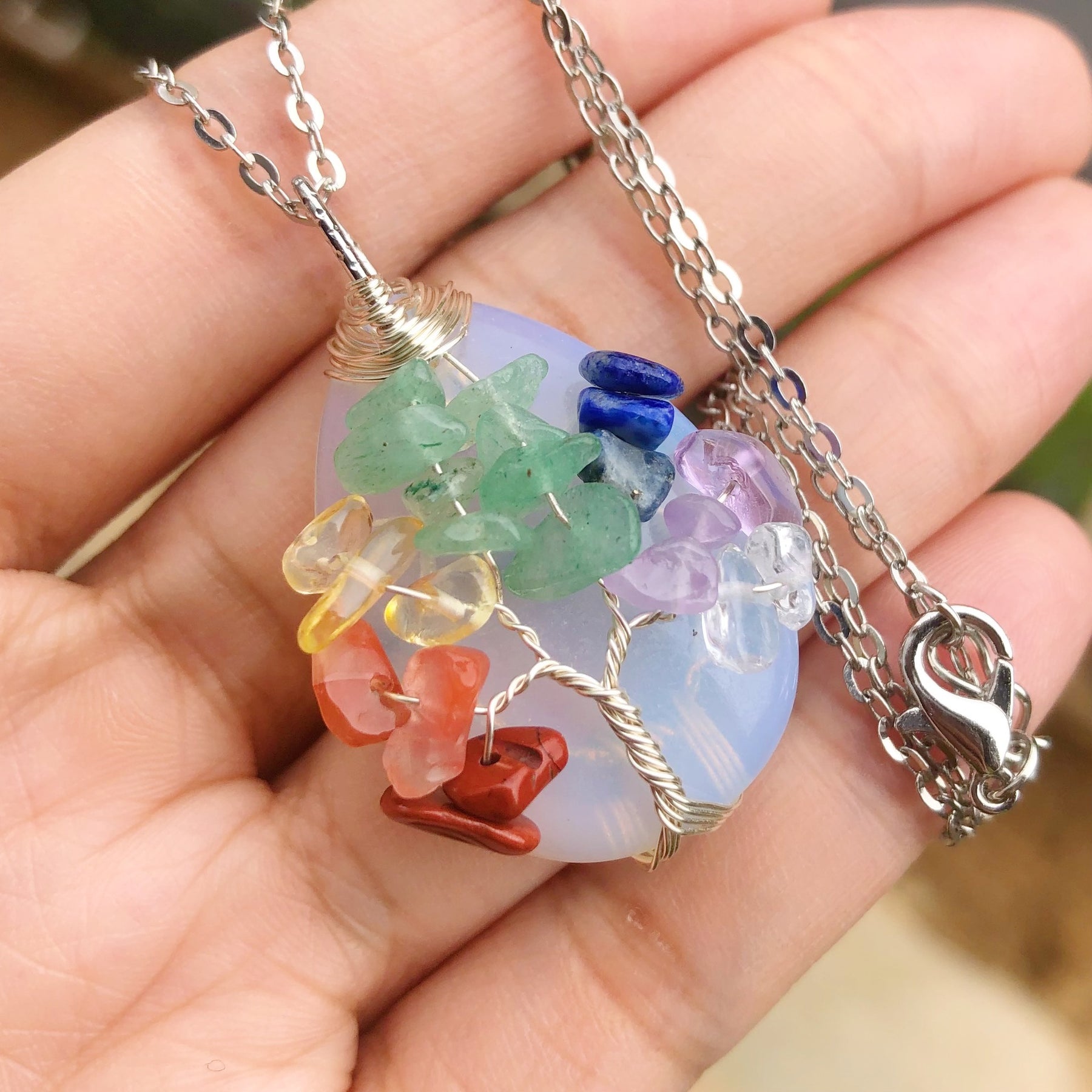 7 Chakra Agate Gemstone Tree Of Life Water Drop Necklace Chakra Healing