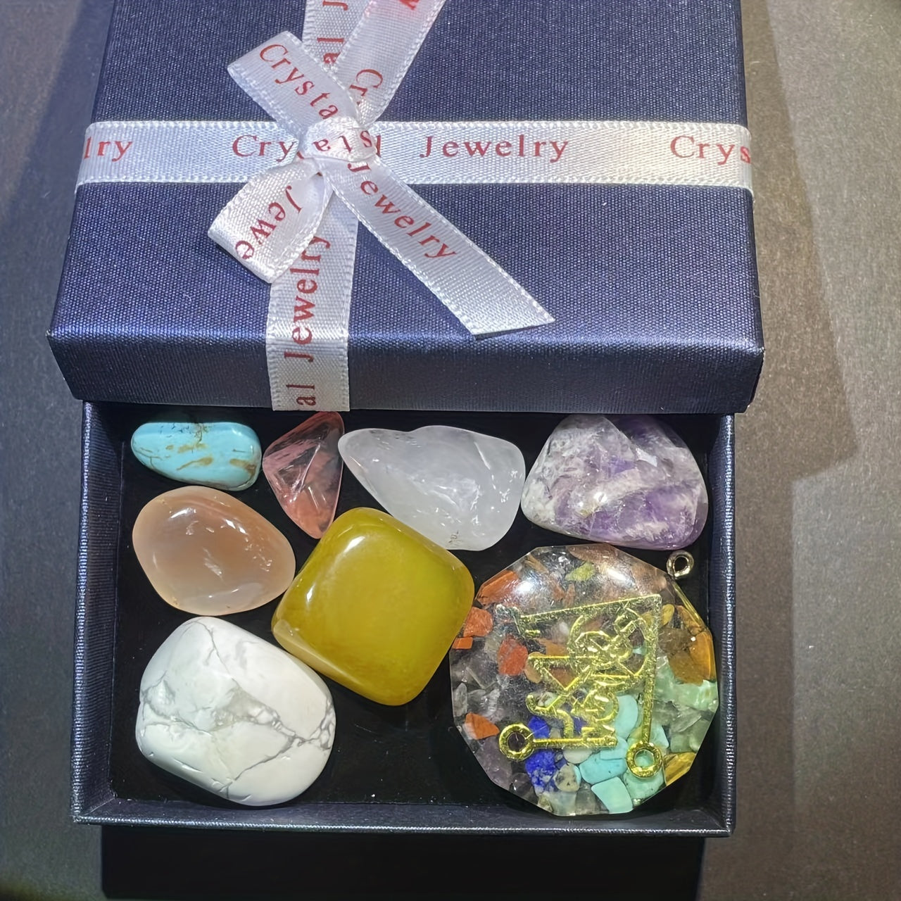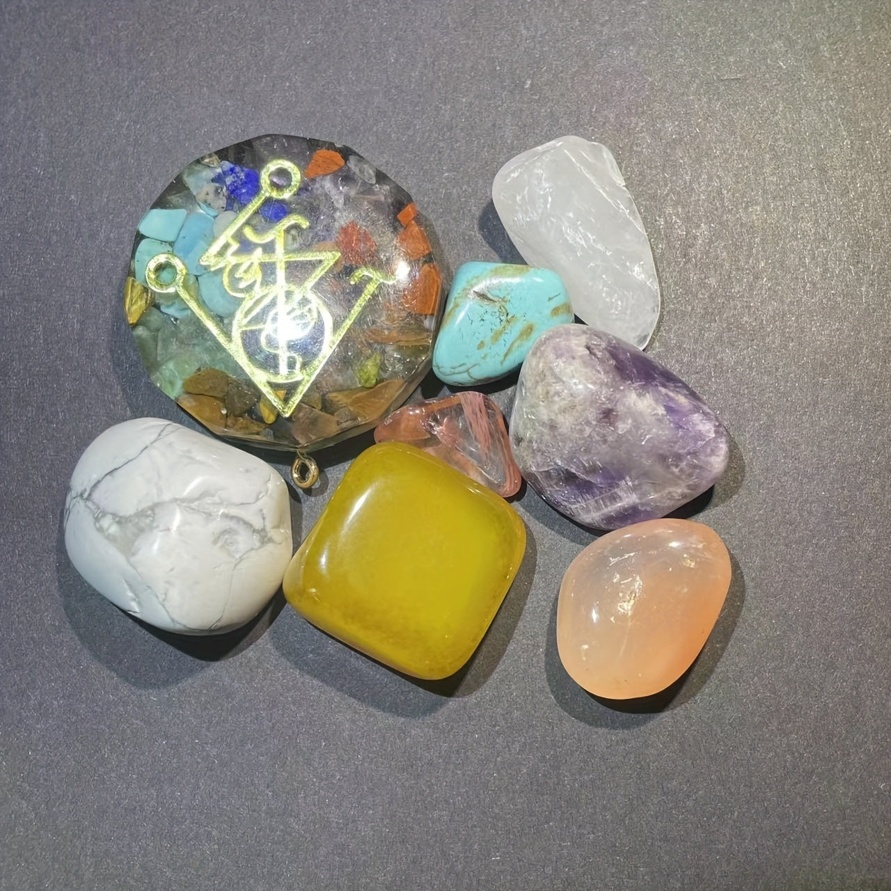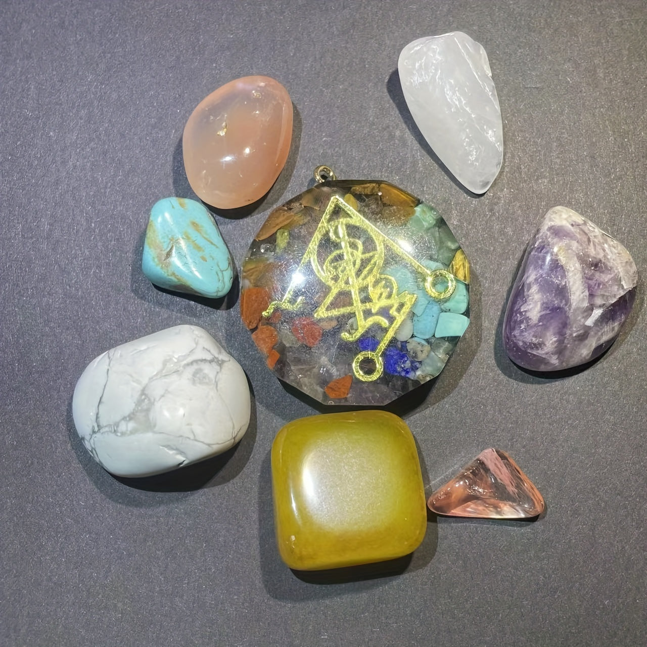 Experience the healing power of crystals with this 7-piece chakra crystal mosaic set. Perfect for yoga practice and energy healing.