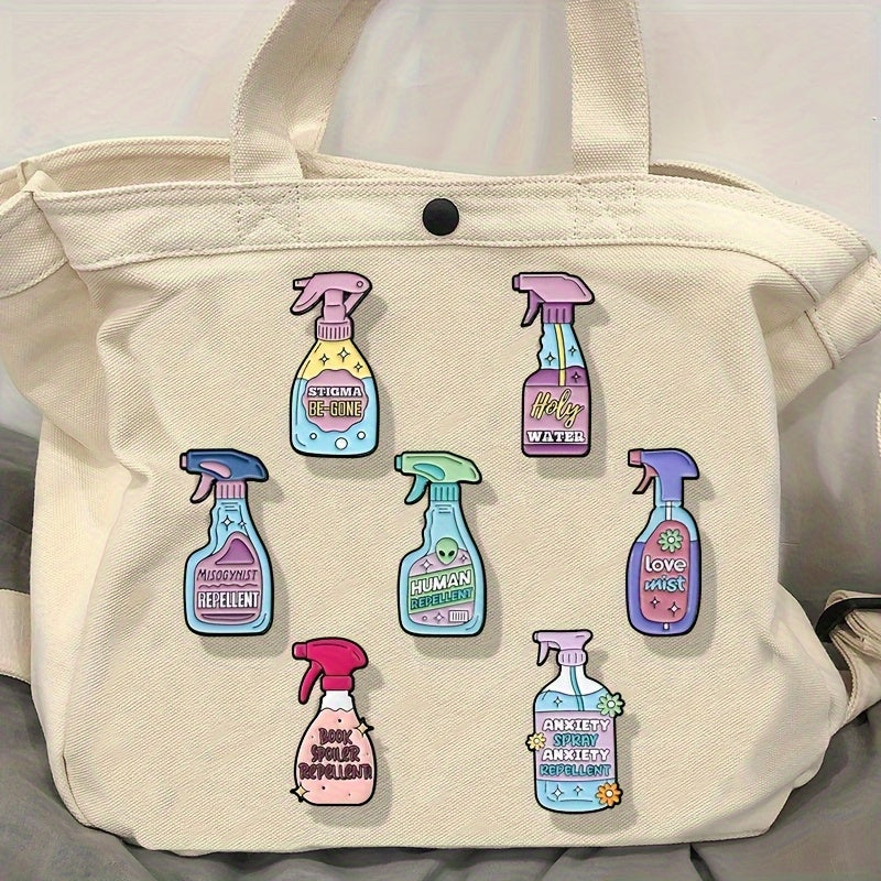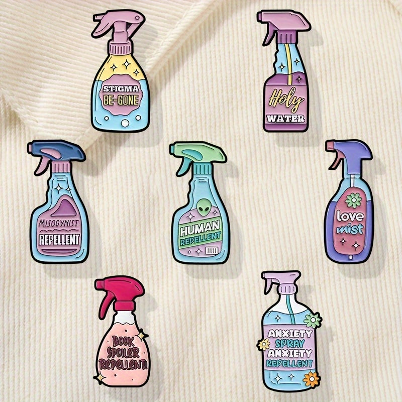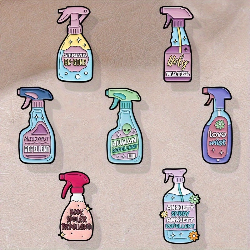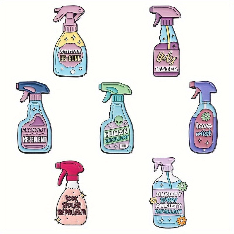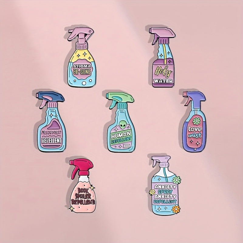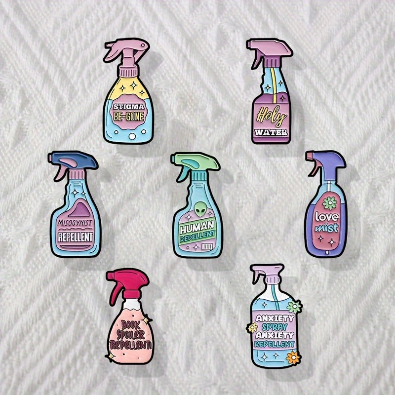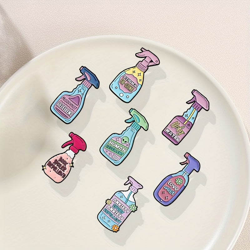 This DIY gift set includes 7 colorful acrylic brooches featuring cartoon dopamine spray bottle designs. Perfect for clothing, backpacks, hats, and more.