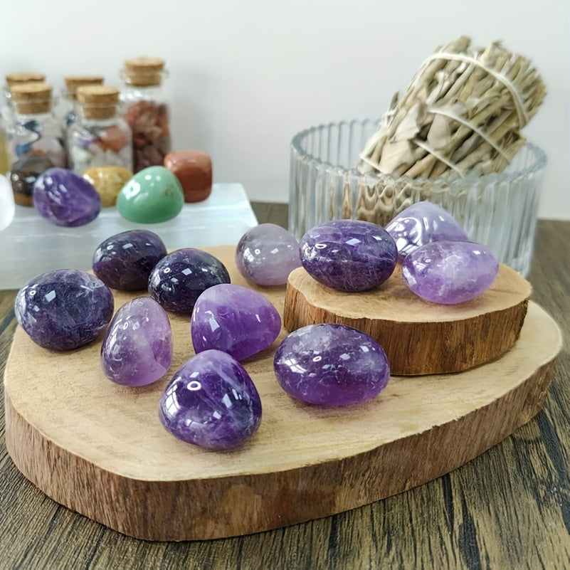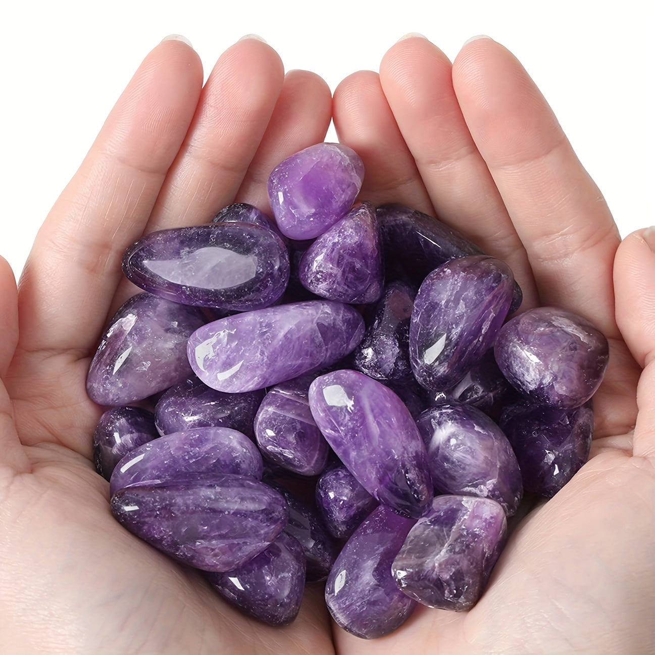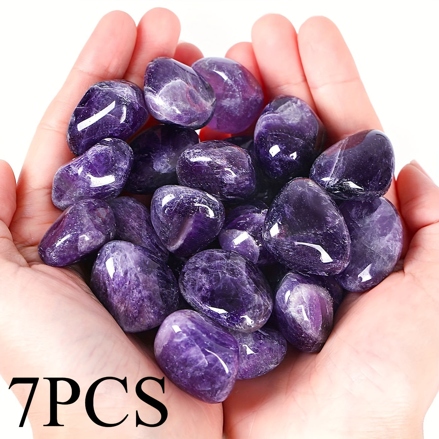 Enhance your jewelry creations or home decor with these 7pcs of natural tumbled and polished amethyst crystals. Perfect for filling vases or adding a touch of elegance to any space.