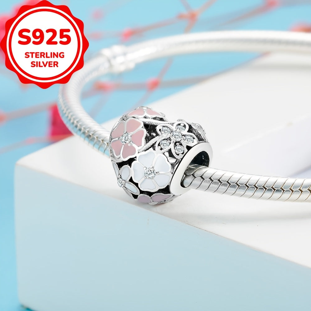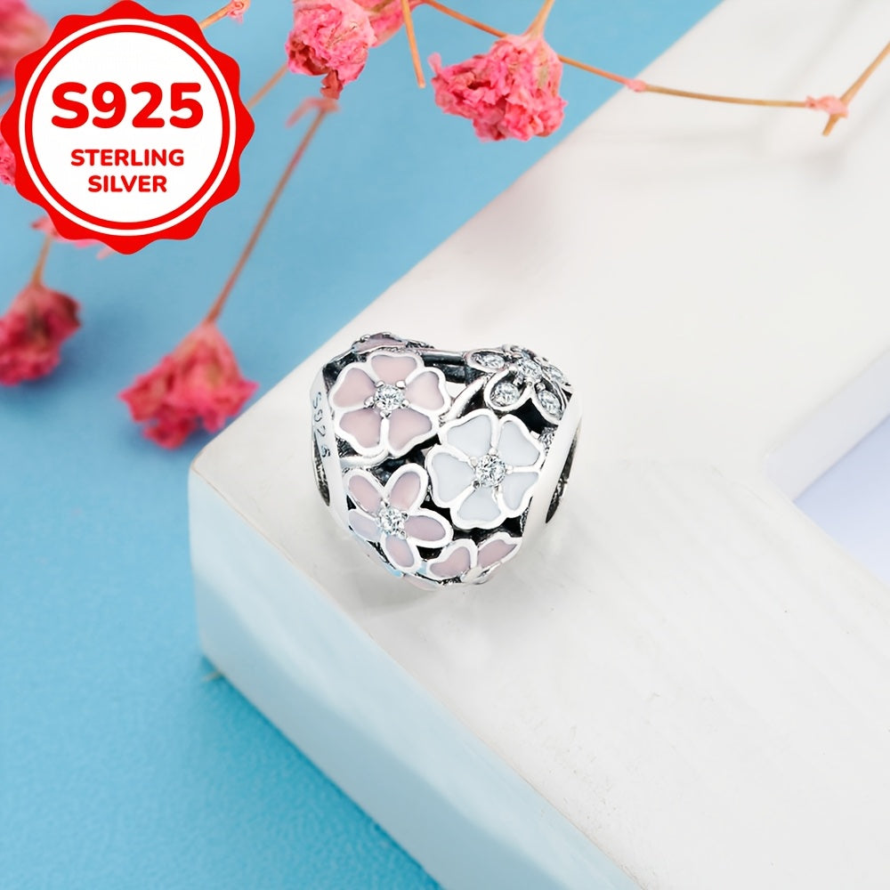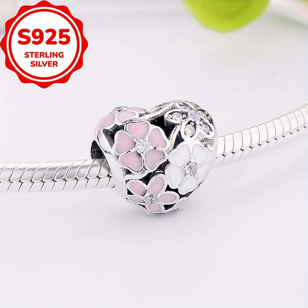 This 925 sterling silver heart charm features a synthetic zircon flower pattern design, perfect for creating your own unique jewelry pieces. Ideal for gift-giving or personal use.