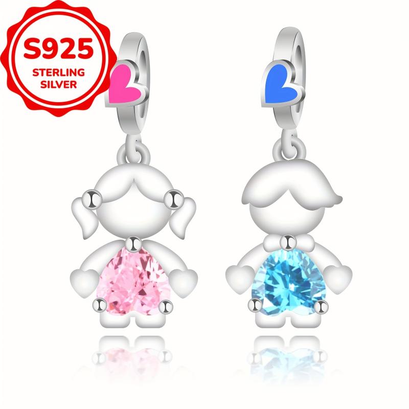 Adorn your jewelry collection with this adorable 925 sterling silver pendant featuring a little girl and boy. Perfect for DIY making, birthdays, or holiday gifts.