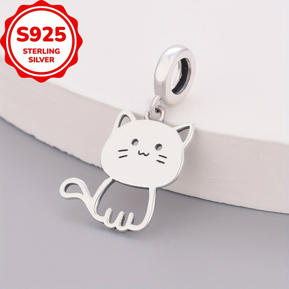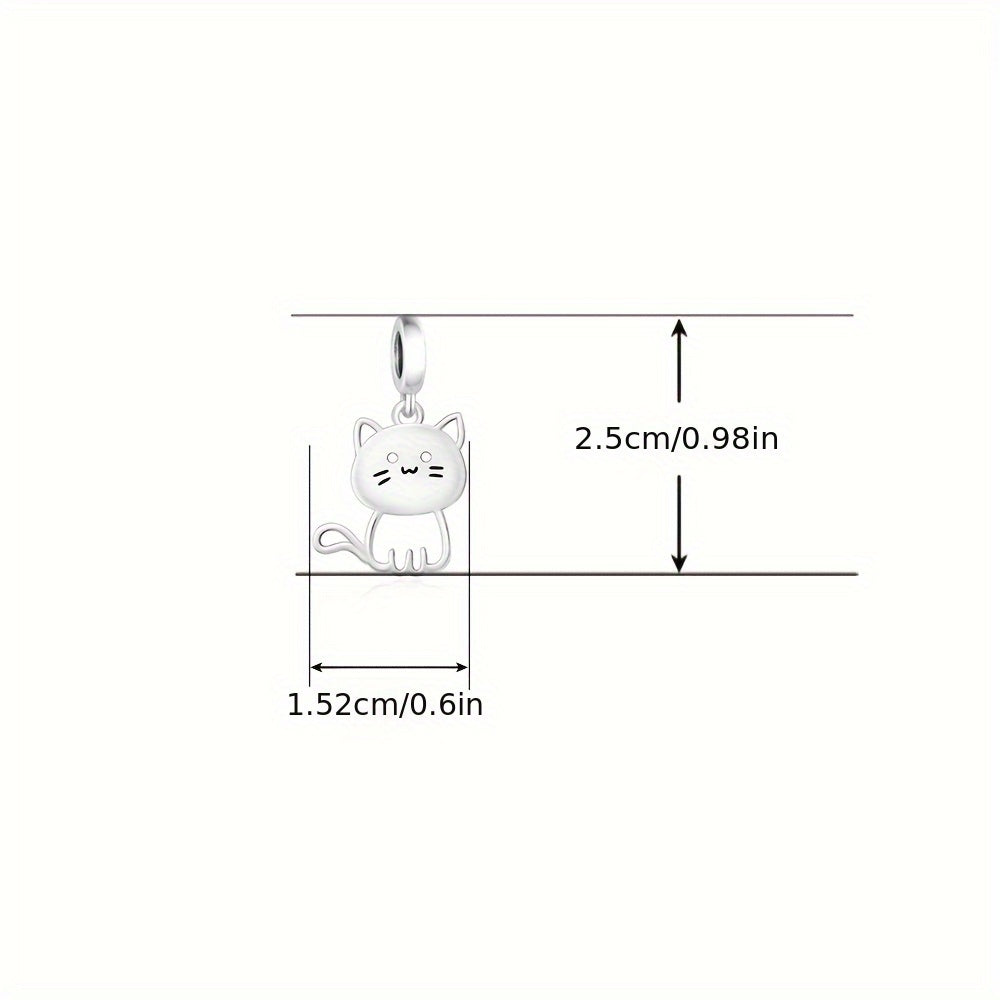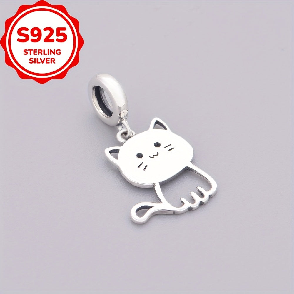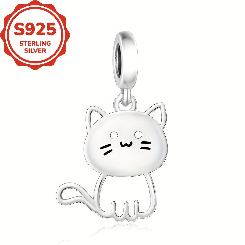 925 Sterling Silver Cat Decorative Bead Pendant for DIY Jewelry Making
