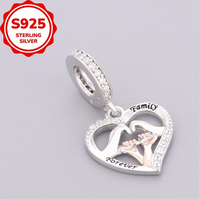 925 Sterling Silver Family Heart Gesture Pendant with Cubic Zirconia
