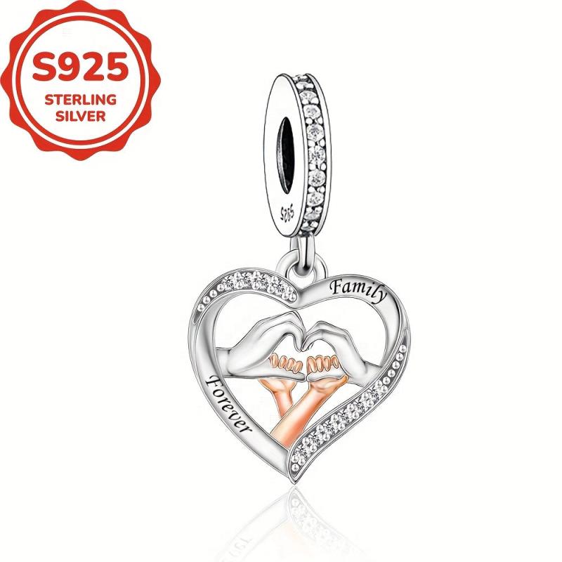 Show your eternal love with this beautiful pendant featuring a parent-child hand holding a heart gesture. Made of high-quality 925 sterling silver with sparkling cubic zirconia accents, this jewelry piece is a perfect gift for mothers, fathers, or children.