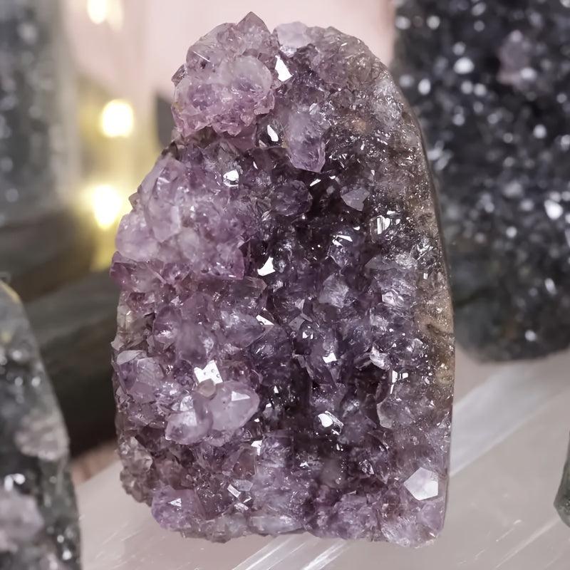 Beautiful amethyst geode cluster with sparkling star details. Perfect for collectors and enthusiasts or for creating unique jewelry pieces.
