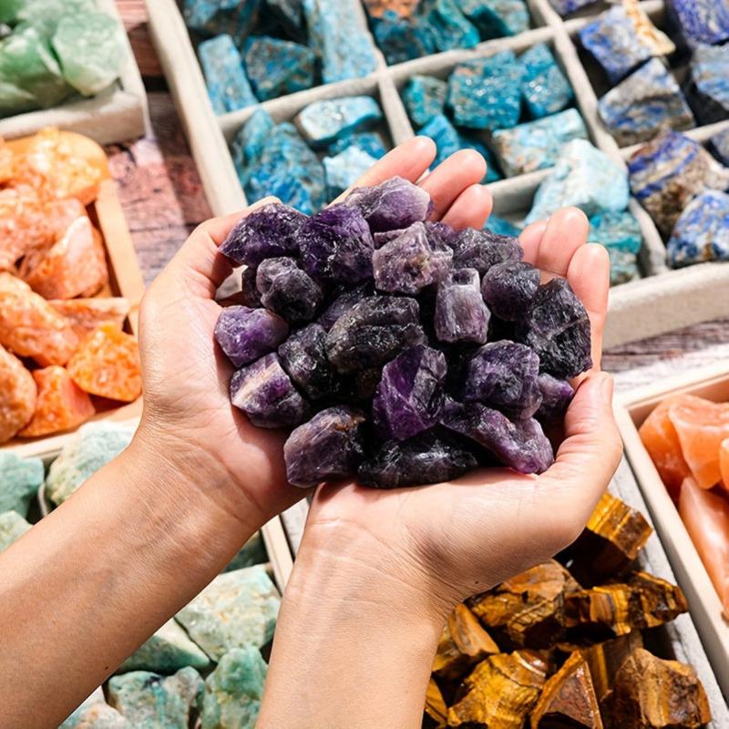 This set includes 1pc, 4pcs, and 7pcs of natural amethyst stones perfect for cutting, polishing, wire wrapping, and jewelry making. The rough crystals are ideal for lapidary and reiki practices.