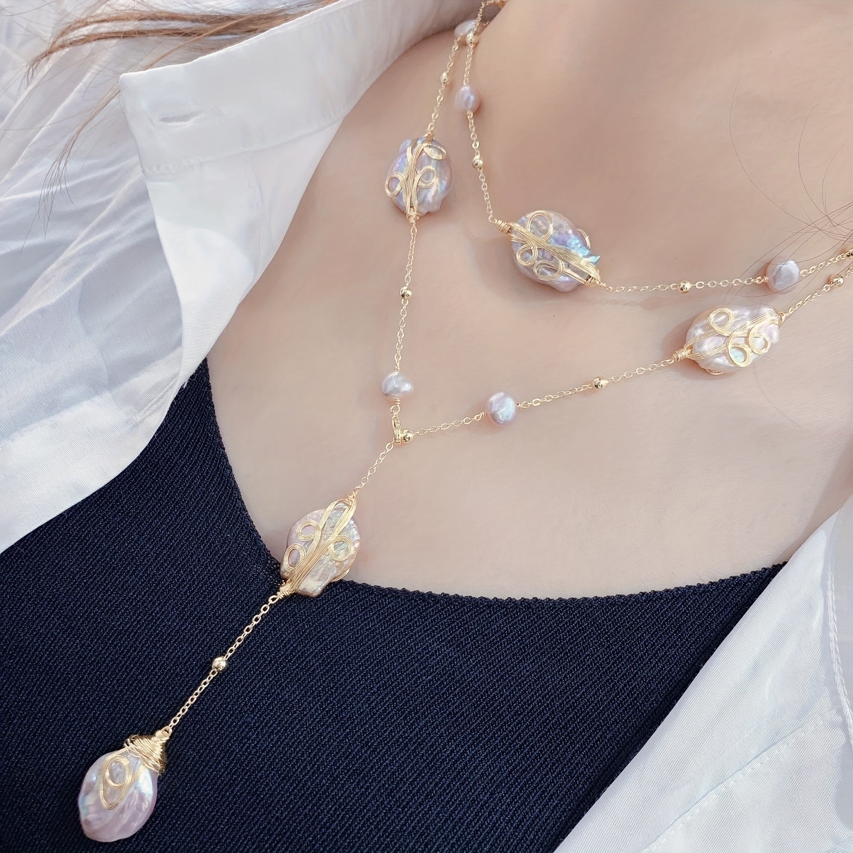 This vintage baroque pearl multilayer necklace is a lovely gift for girls and women. It features a stunning design that will make a statement.