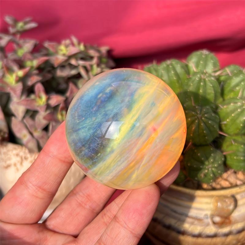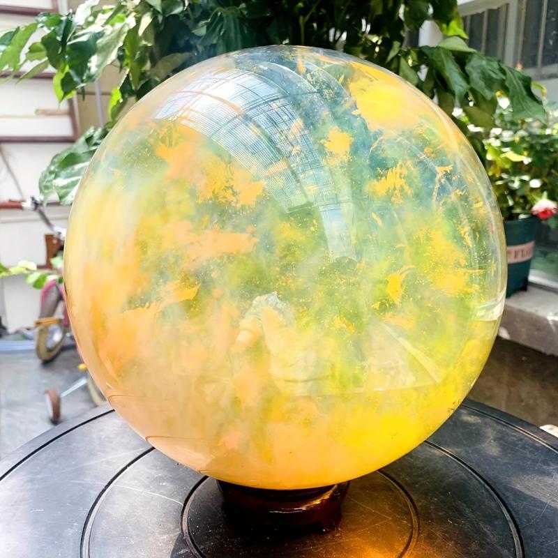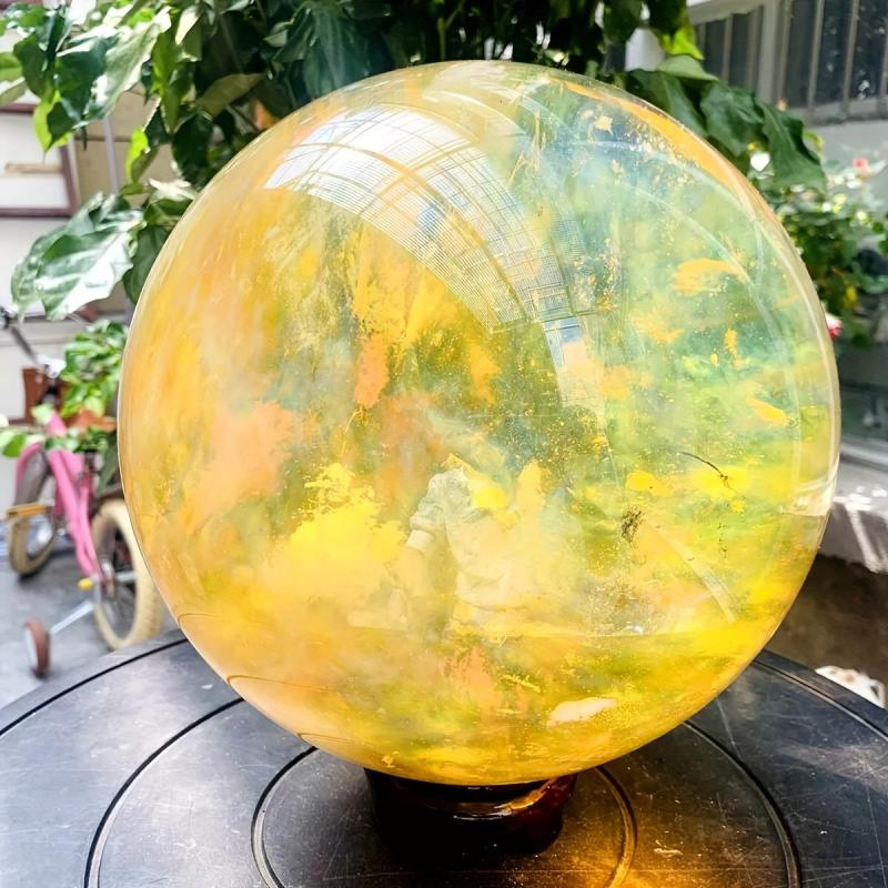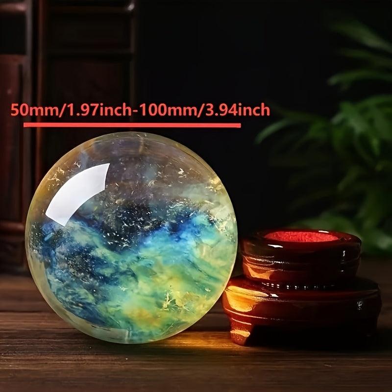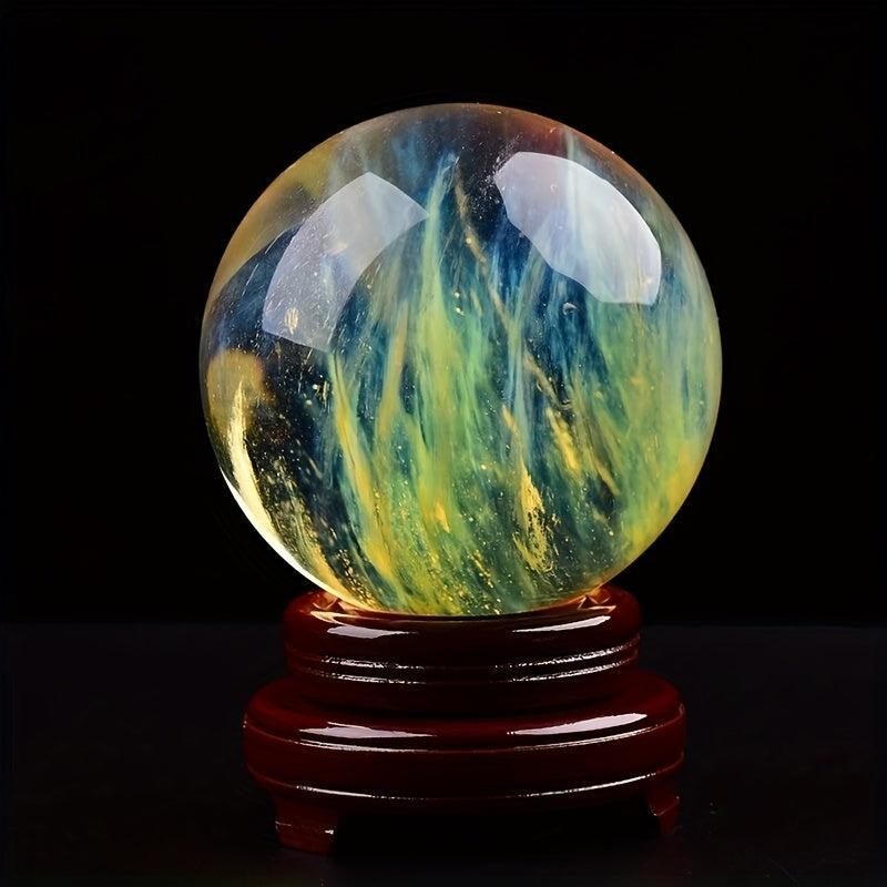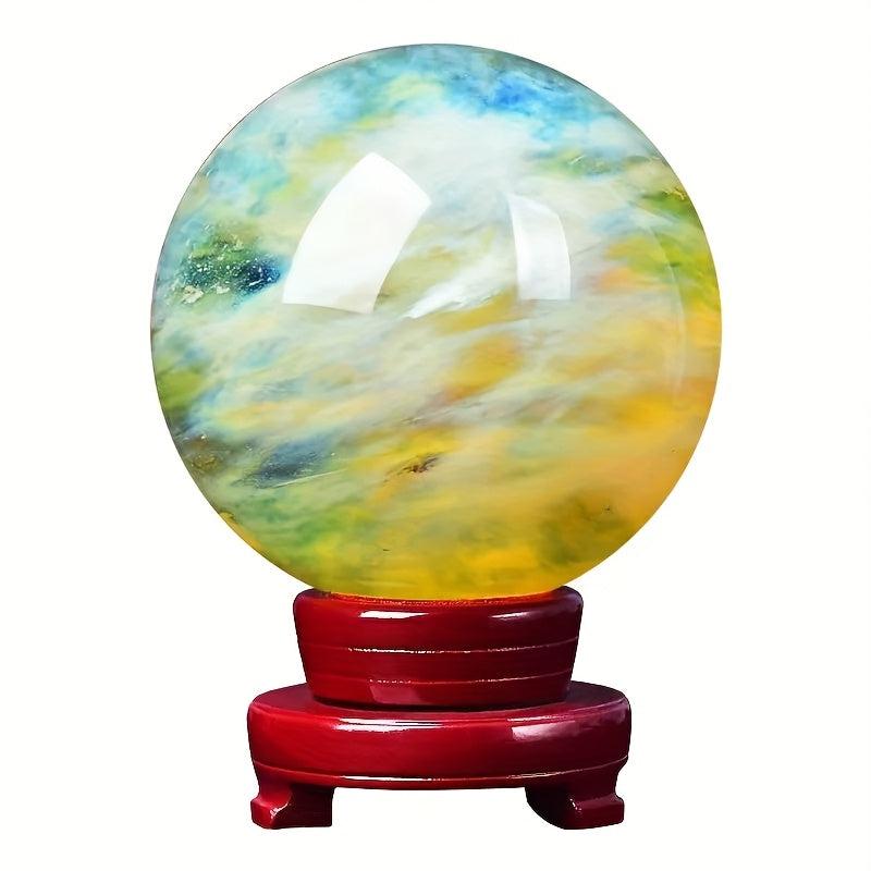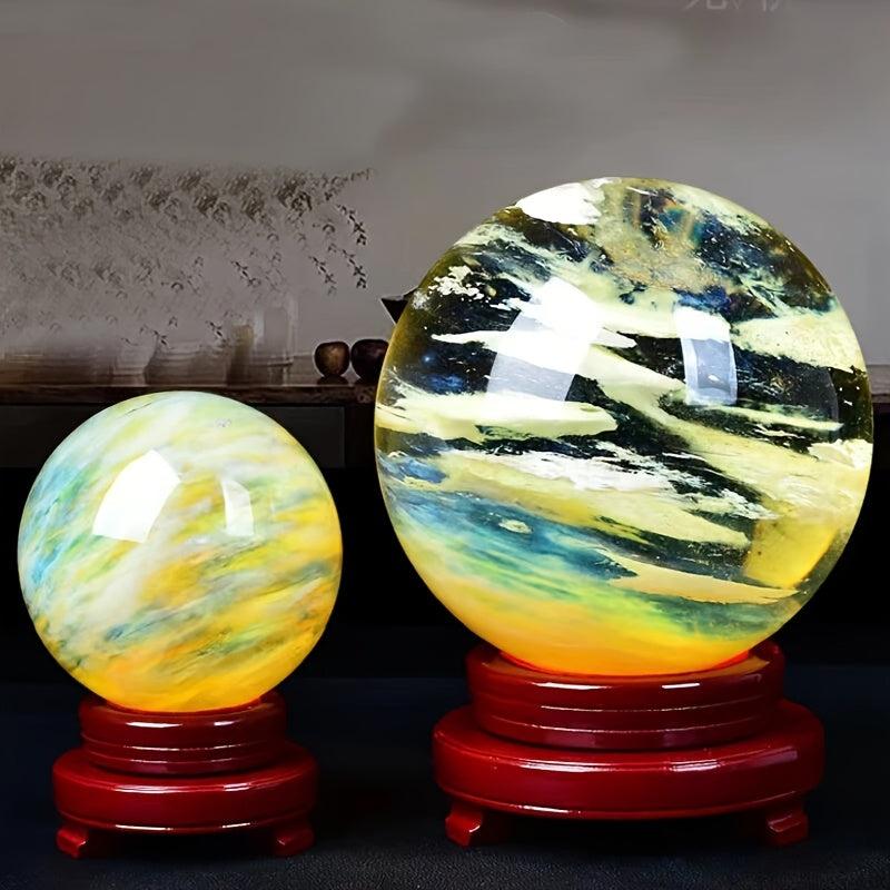 Add a touch of Bohemian style to your decor with this unique yellow smelting stone ball. It features yellow striped minerals, making it a perfect geological collection item for home or office. Also ideal as a DIY gift.